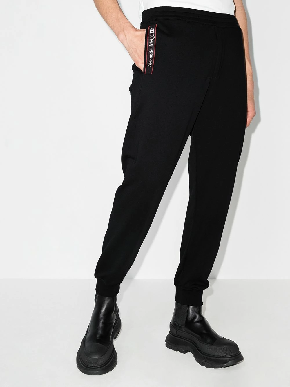Take your sweats to the street. In a straight-leg silhouette with logo-tape detailing, this pair of track pants from Alexander McQueen effortlessly transition you from your sofa, to the gym, to front row of Milan Fashion Week. Where will they take you?