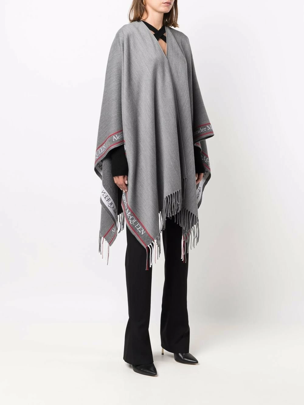 Alexander McQueen logo-trim knitted cape
