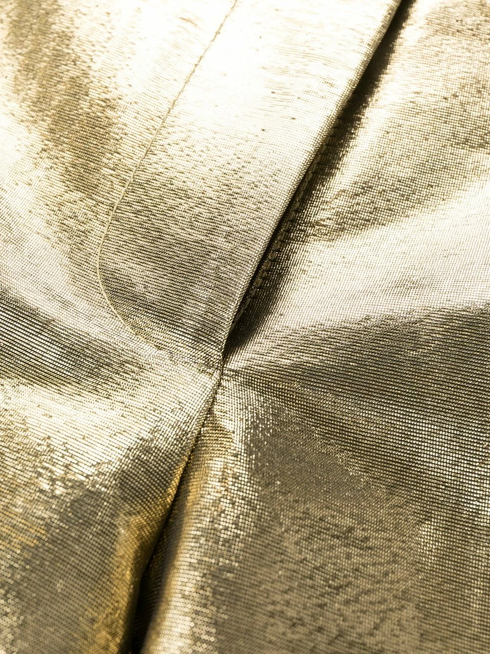 Make sure your wardrobe matches your competitive spirit with these Alexander McQueen trousers. In a sleek gold-tone hue, they will have you winning the fashion game. Go for gold.