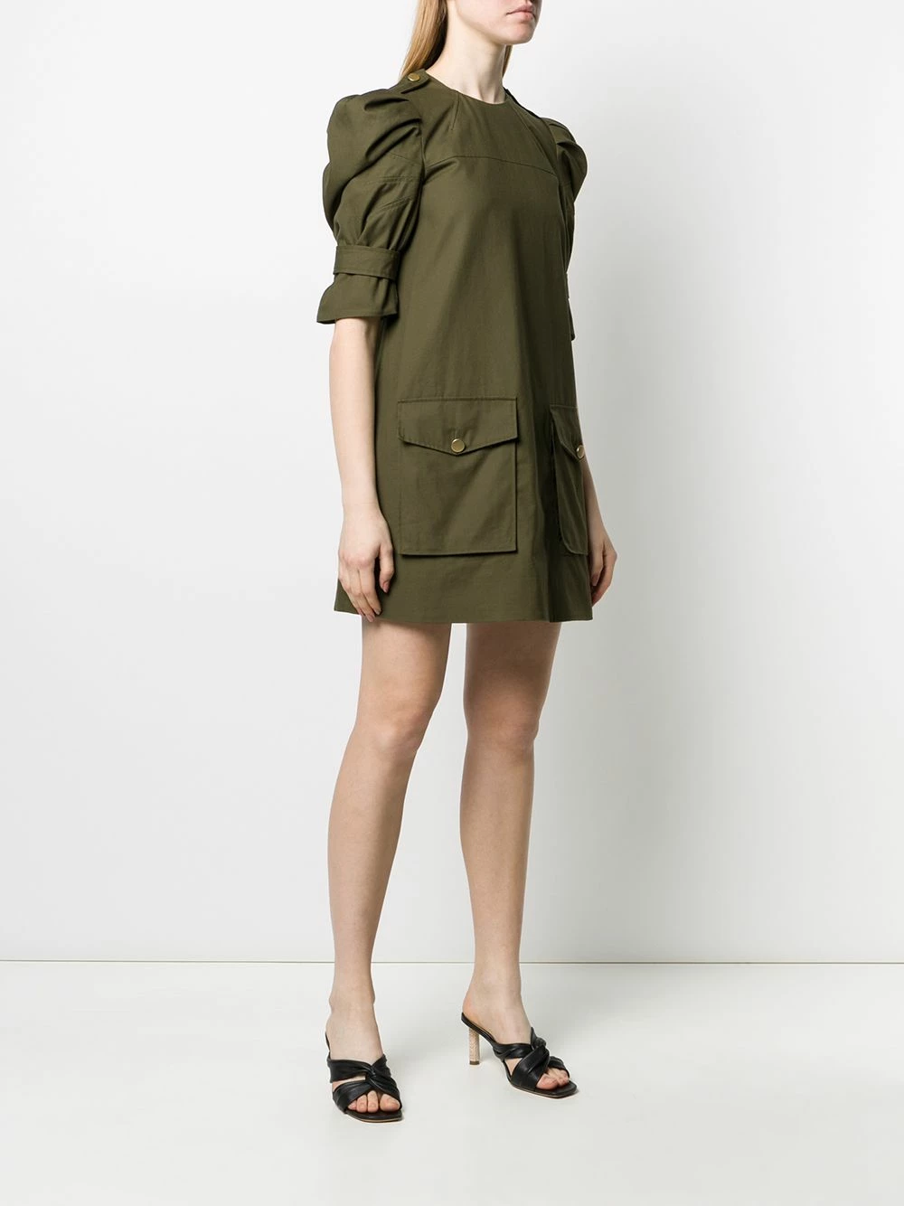Think of your outfit like your armour. Made from cotton, this khaki military-style mini dress from Alexander McQueen is fit for a warrior. Ready for battle. Featuring a round neck, short sleeves, ruched details, an a-line shape, a front buttoned flap pockets, a short length, a concealed rear zip fastening and button cuffs.