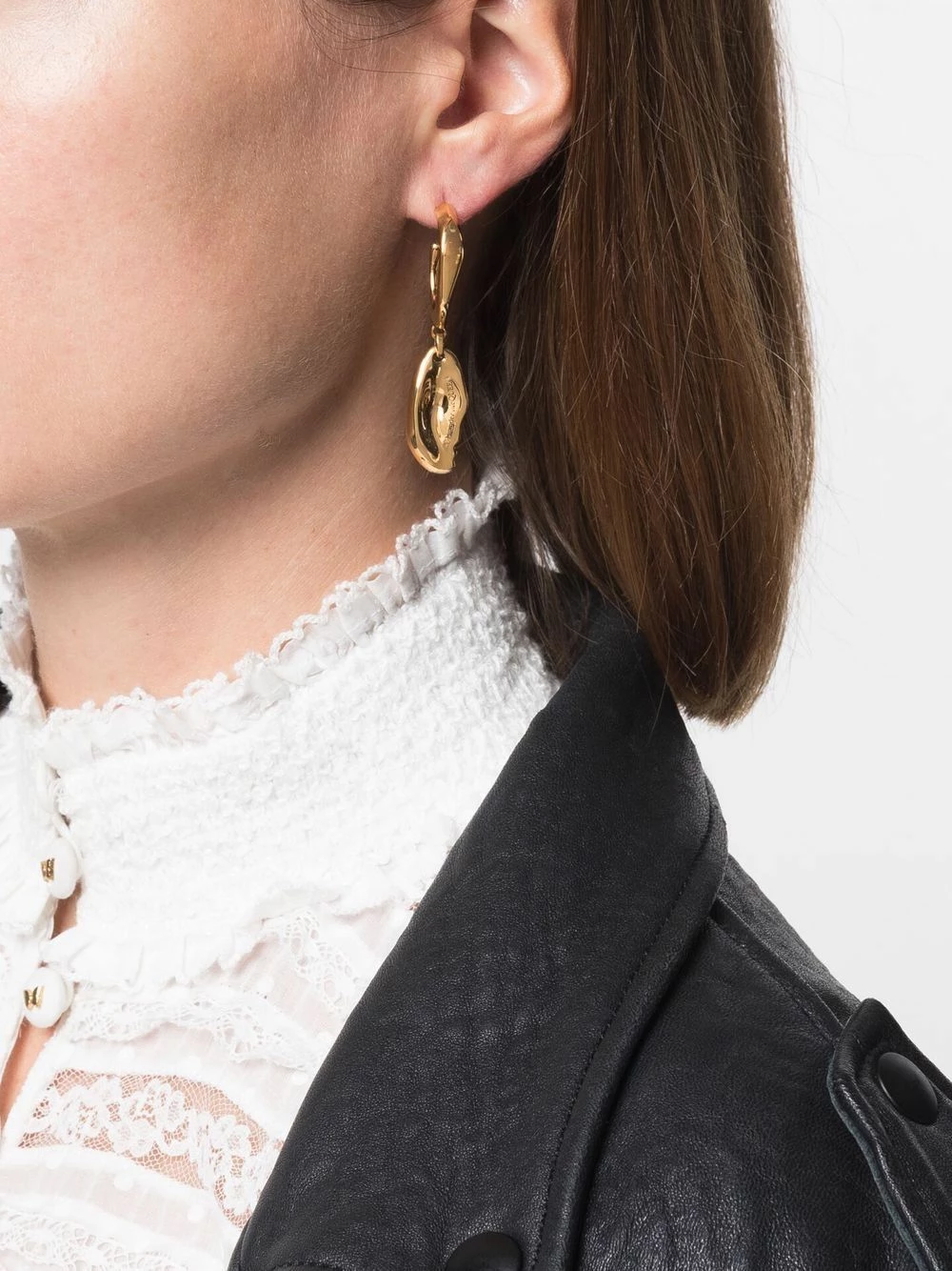 Playing to the gothic glamour of Alexander McQueen, these Molten drop earrings have a distorted look. The hoop accessory has been crafted from brass in a lavish gold-tone.