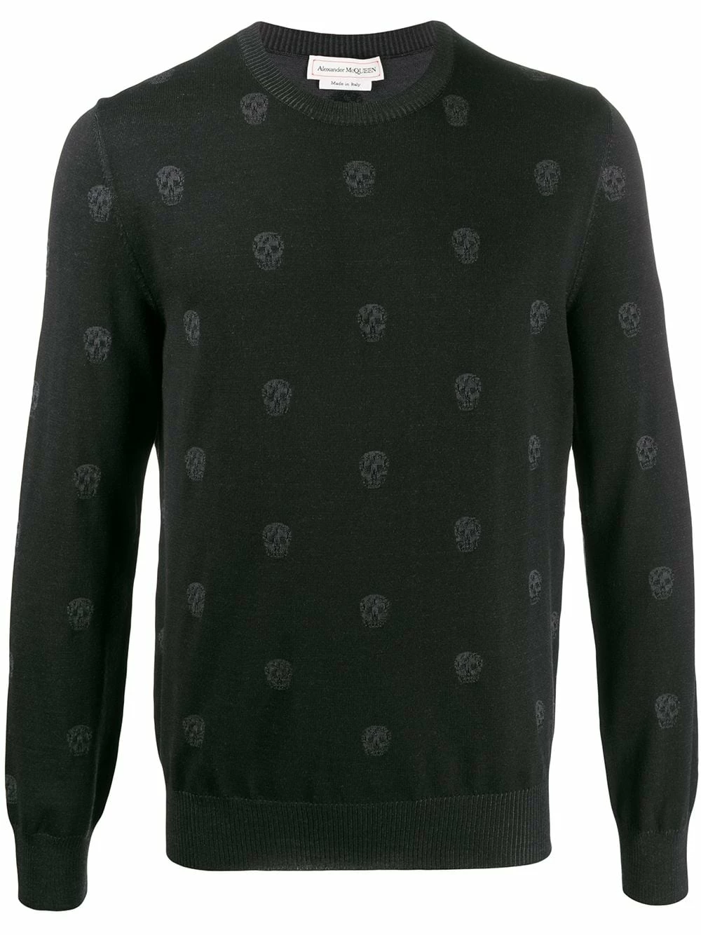 How to solve the knitwear equation? Texture plus Alexander Mcqueen Skulls plus a relaxed fit equals this dark grey wool multiple skulls jumper that will be infinitely keeping you warm and cosy. If only all equations were this easy – we would have passed all Math tests. Featuring a ribbed crew neck, long sleeves, a ribbed hem and cuffs, a relaxed fit and a light grey skulls pattern all-over.