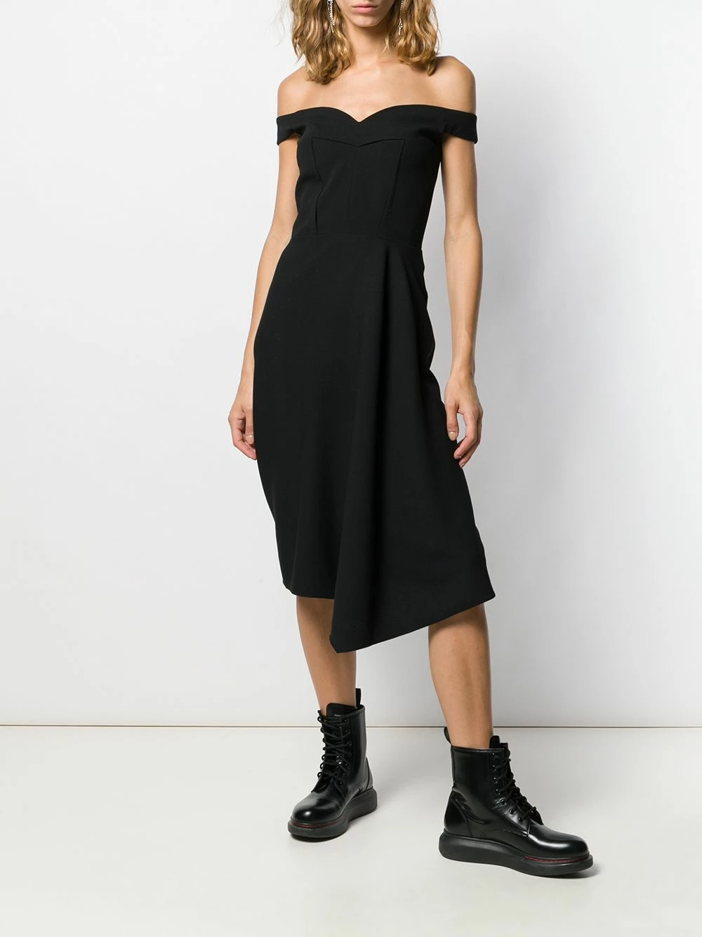 LBD? How about MBD (midi black dress)? Explore new options starting with this Alexander McQueen black midi dress boasting a sultry off-the-shoulder design. There’s no sin in showing some skin. Featuring a fitted waist, an asymmetric hem and a concealed rear zip fastening.
