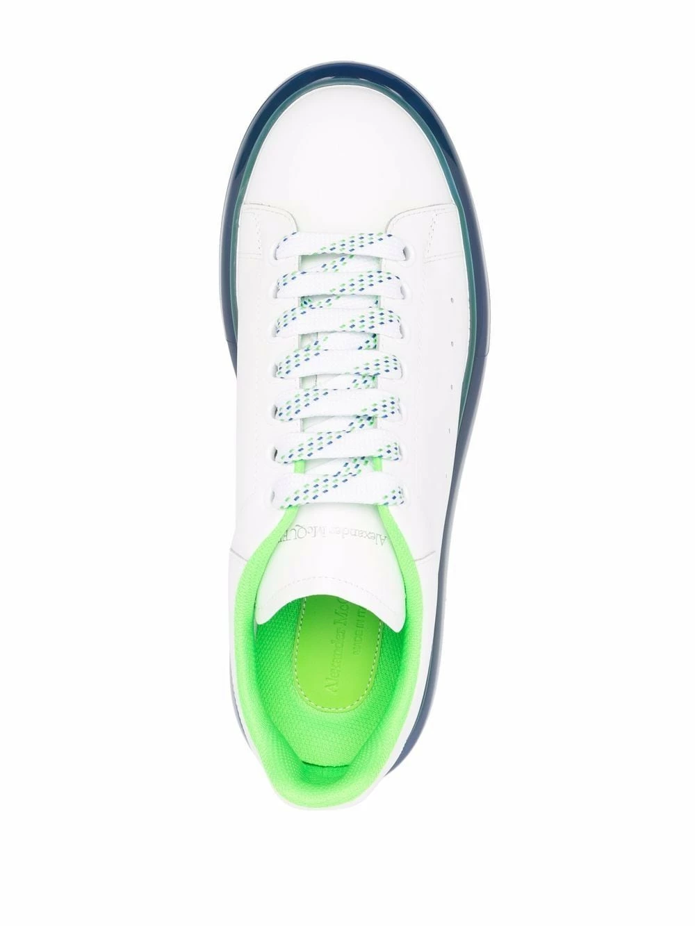 First making a runway debut in 2015, the Oversized sneakers are already an iconic Alexander McQueen style. In this version, the pair is presented in a multicolour design and sits atop a blue signature oversized rubber sole.