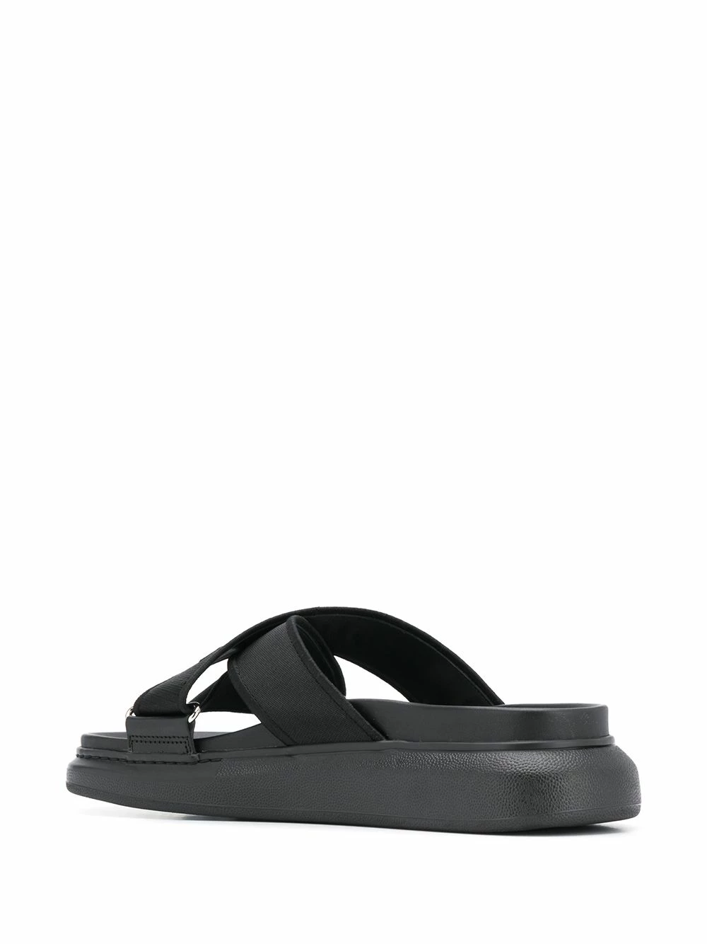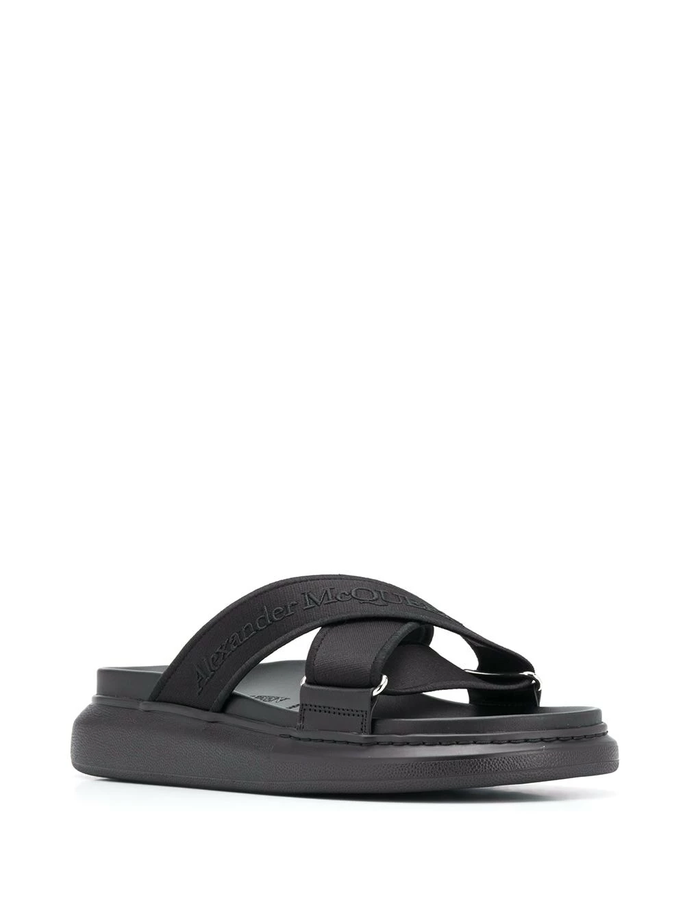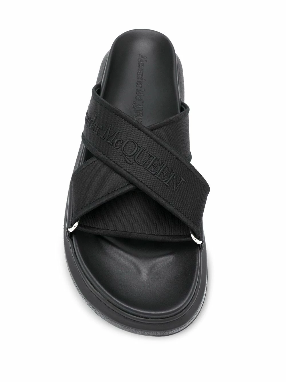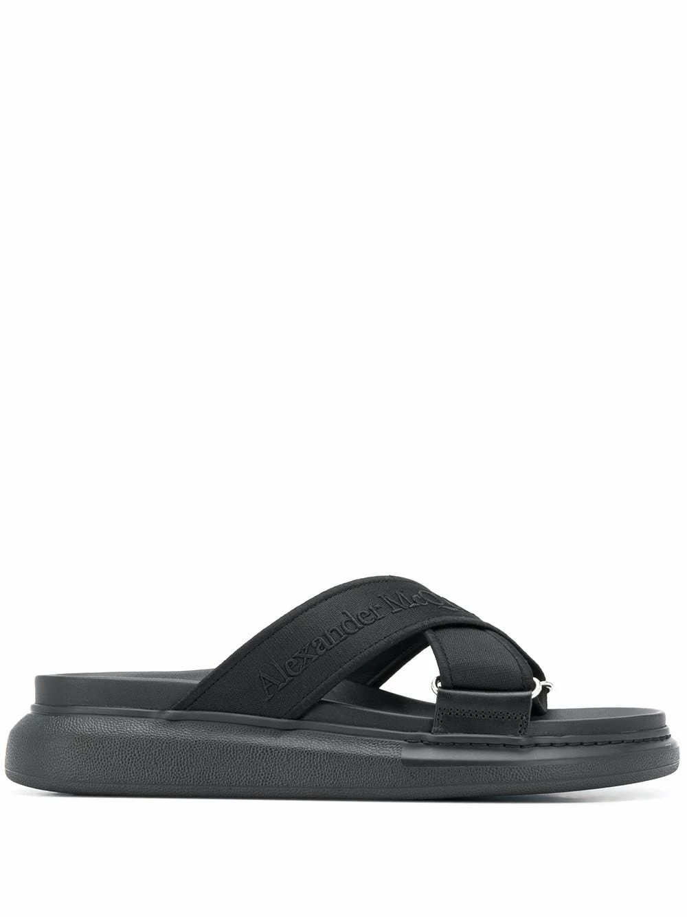 The slide is the perfect design combination of comfort and style, and Alexander McQueen’s effort looks to up the ante in both. The brand’s signature oversized sole and calf leather logo straps play a part in changing the sandal game.
