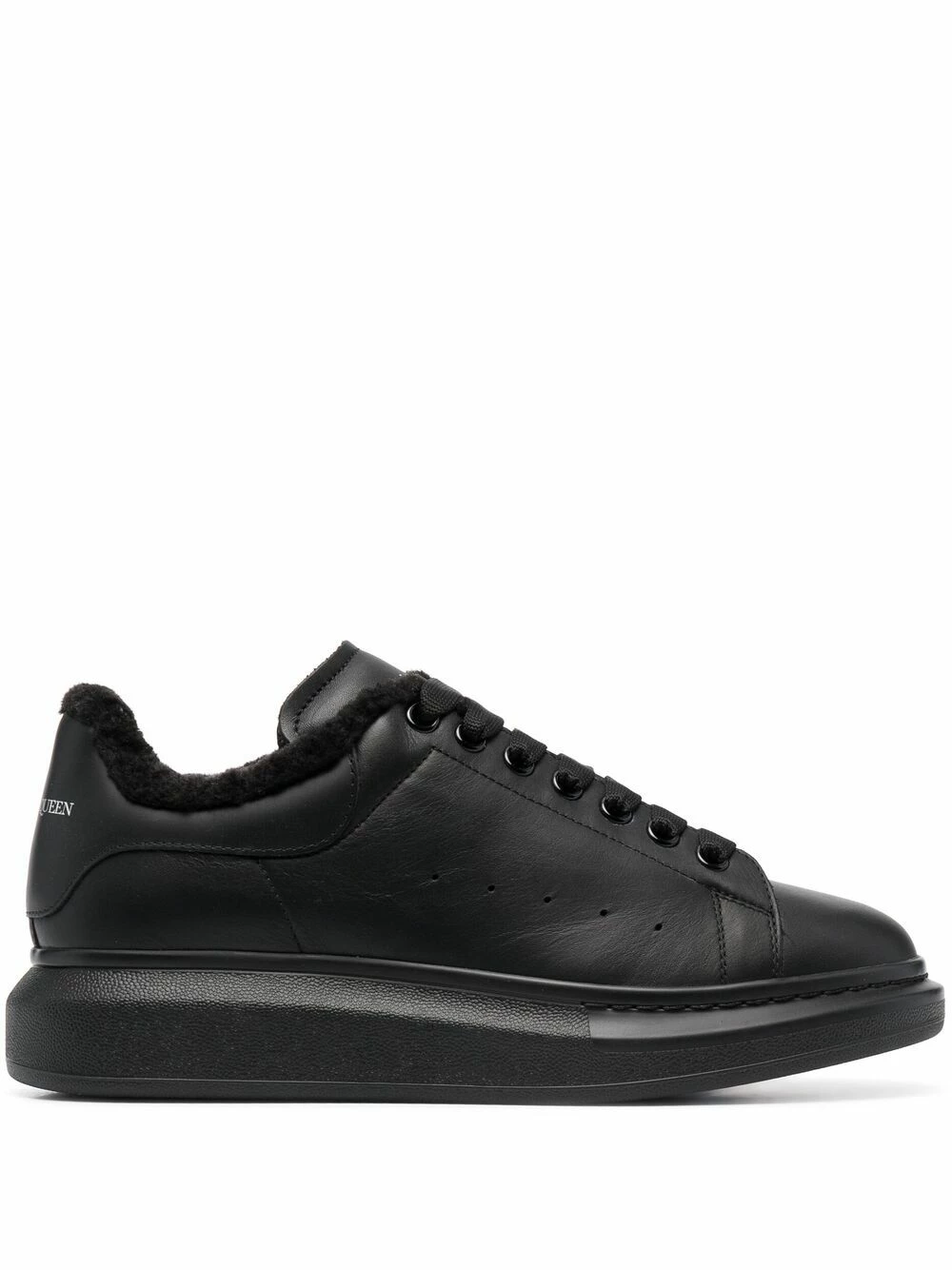 Alexander McQueen switches up an iconic style with these Oversized shearling-trim sneakers. Crafted from calf leather and designed with a shearling trim, these chunky pair combine comfort and style, with highly-covetable results.