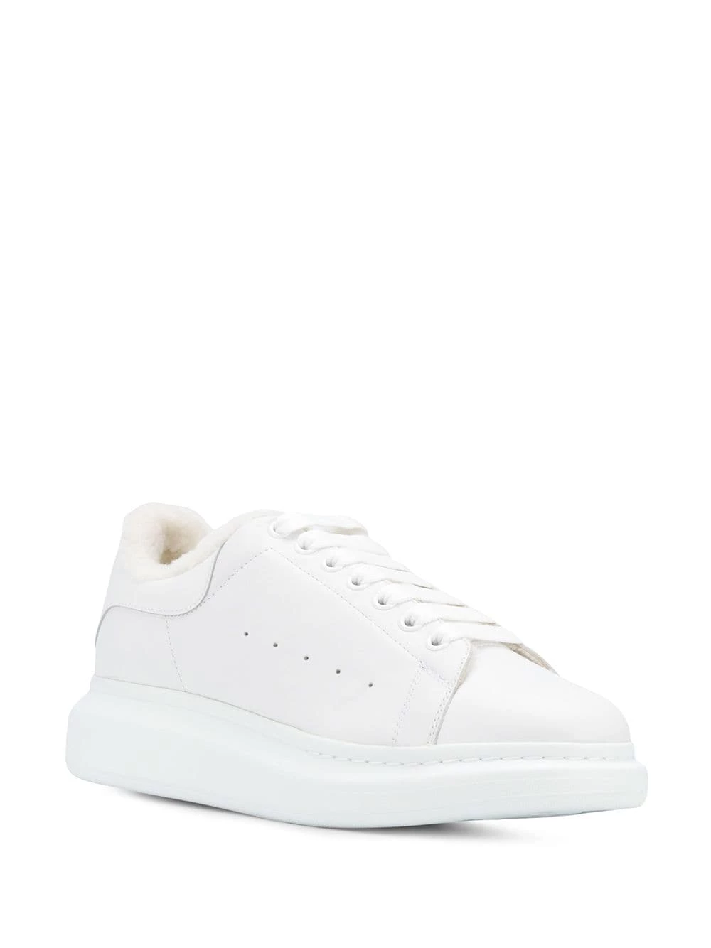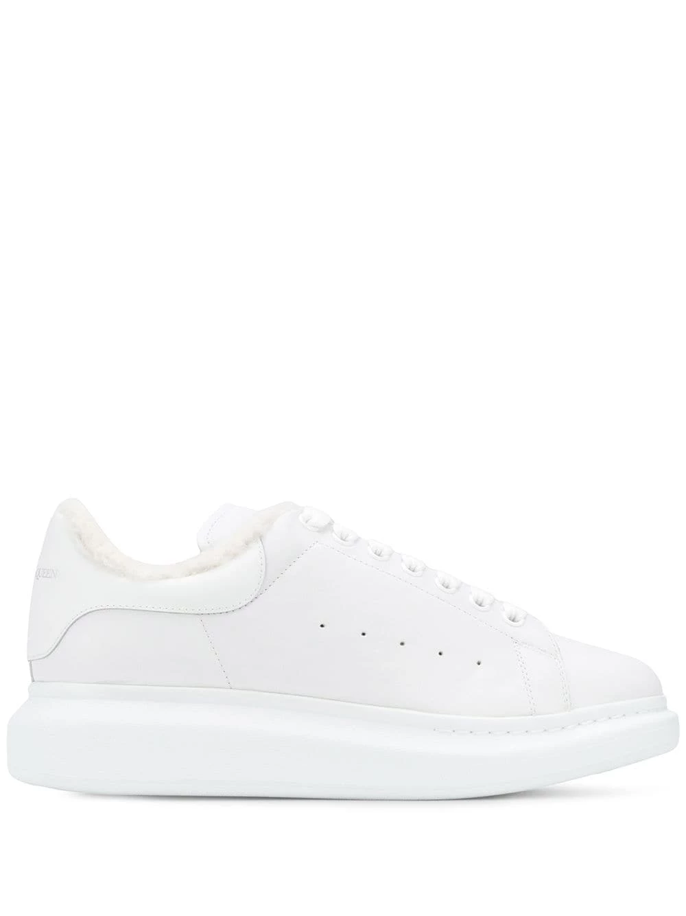 Providing style and warmth, these white leather Oversized sneakers from Alexander McQueen offer a winning combination. They have a classic round toe silhouette, shearling lining and a chunky rubber sole. They’ll be a threat to the rest of your sneaker edit. Featuring a round toe, a lace-up front fastening, a shearling lining and a chunky rubber sole.
