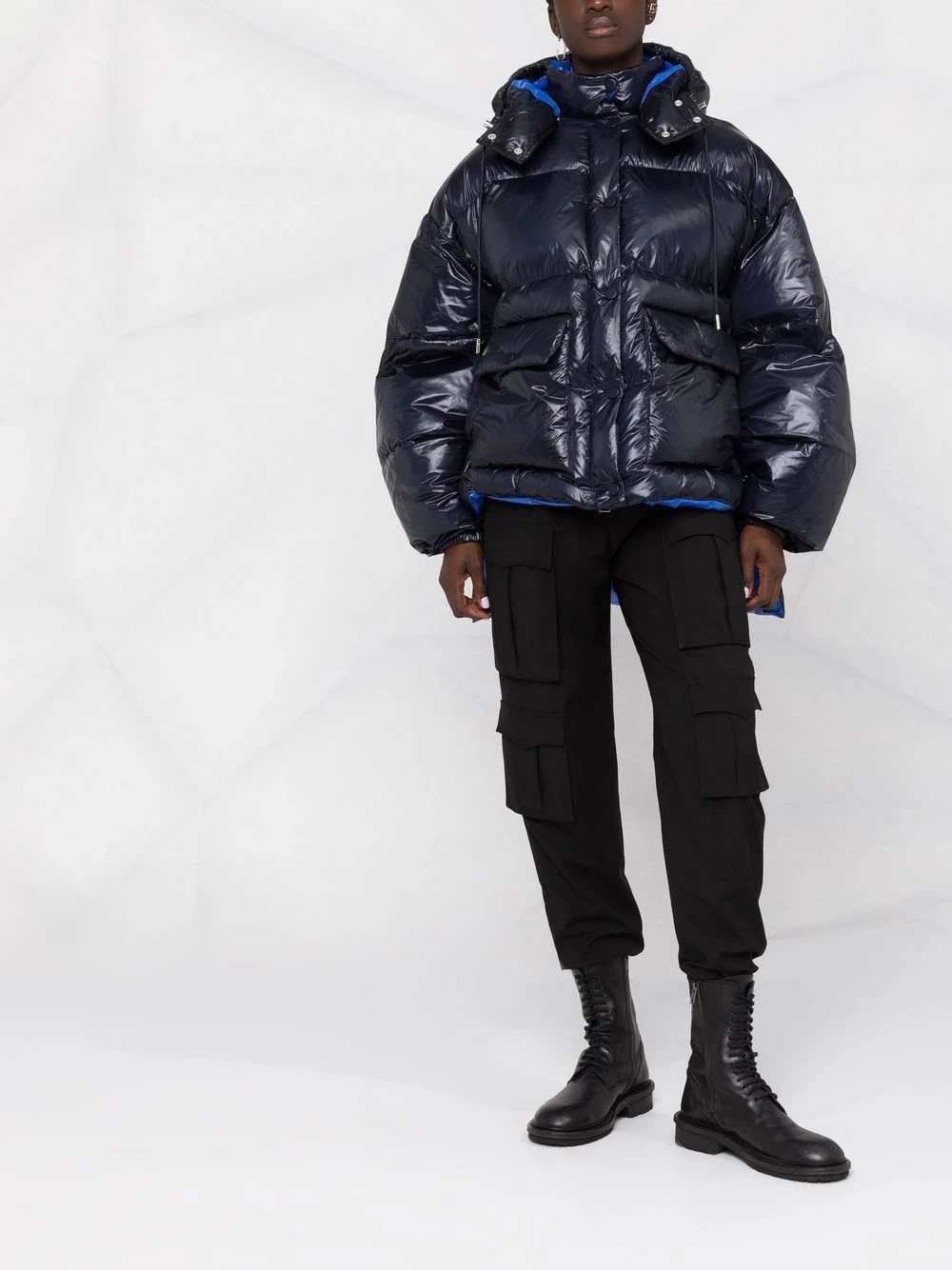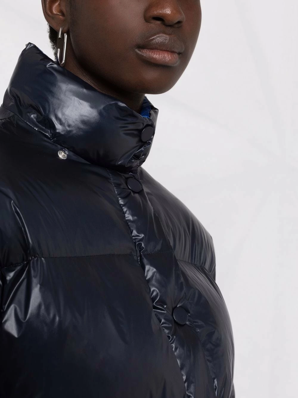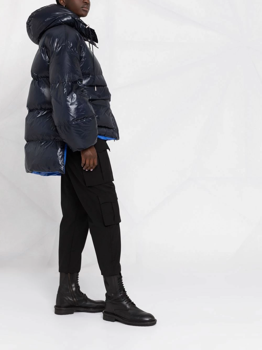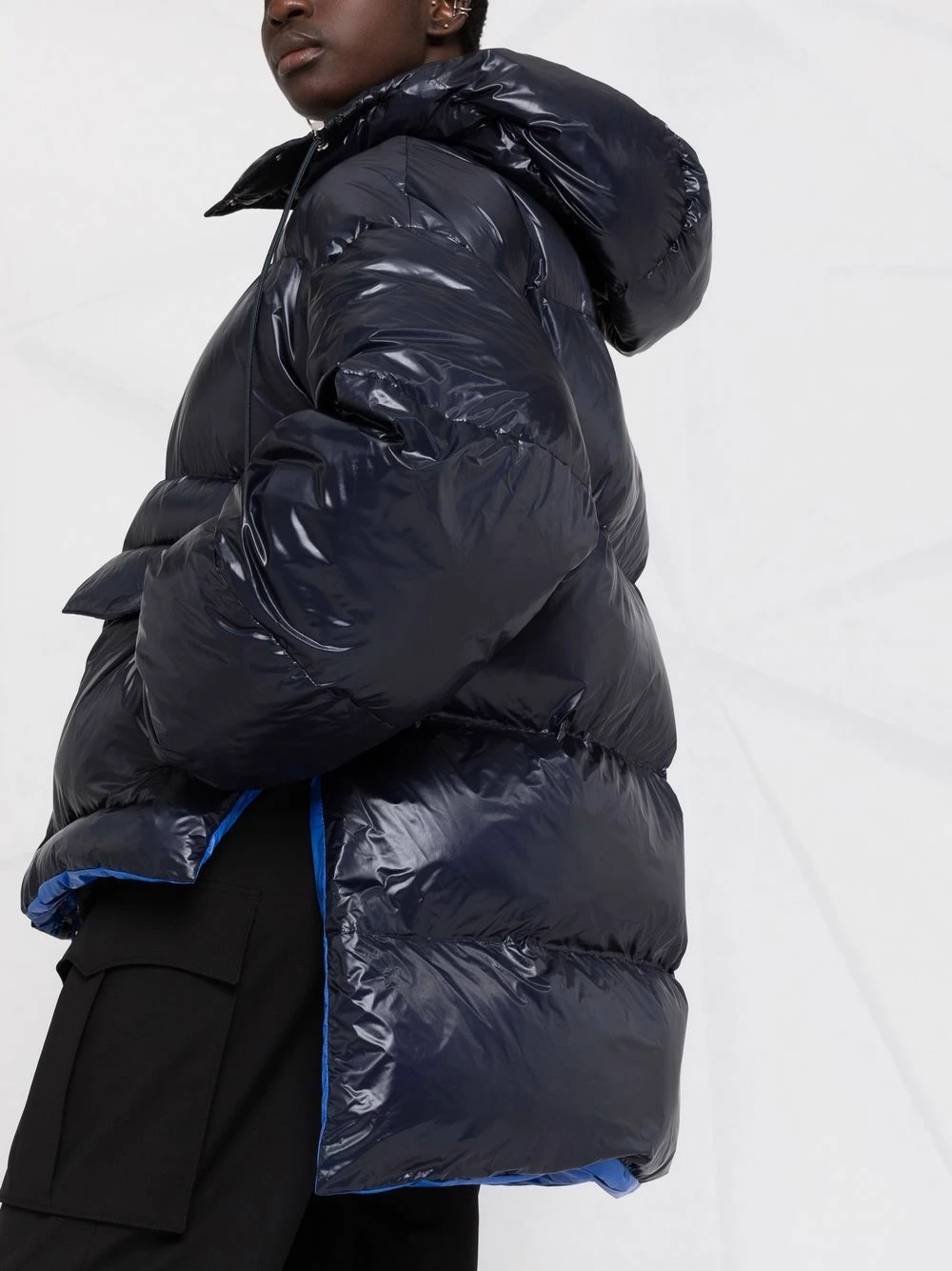 British brand, Alexander McQueen extends its avant-garde aesthetic to its edit of outerwear as this blue coat demonstrates. Designed with a padded lining for an insulated feel, this hooded jacket boasts a high-low hem for an unexpected silhouette.
