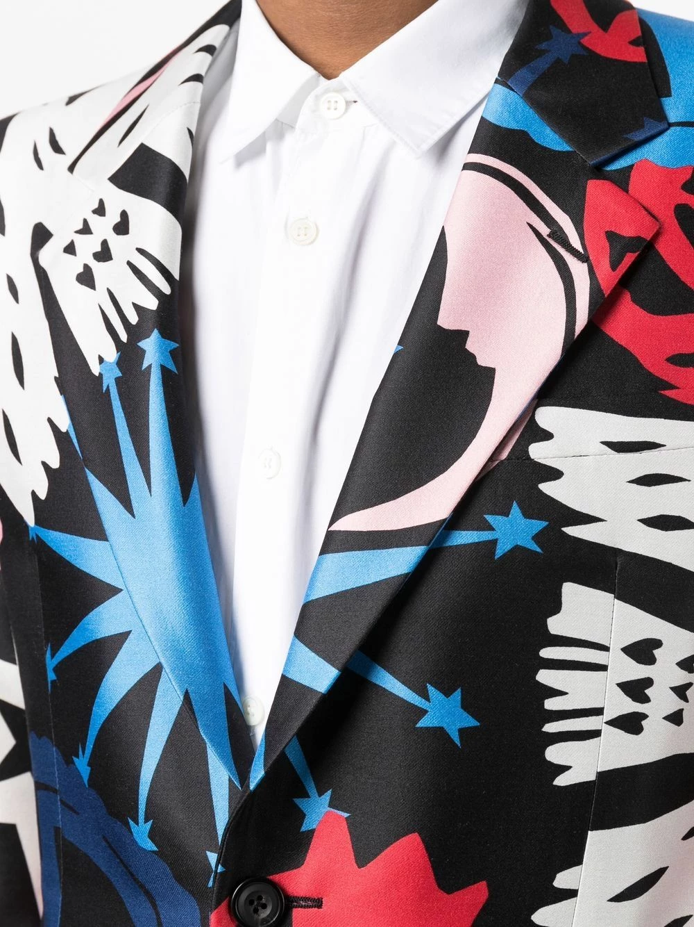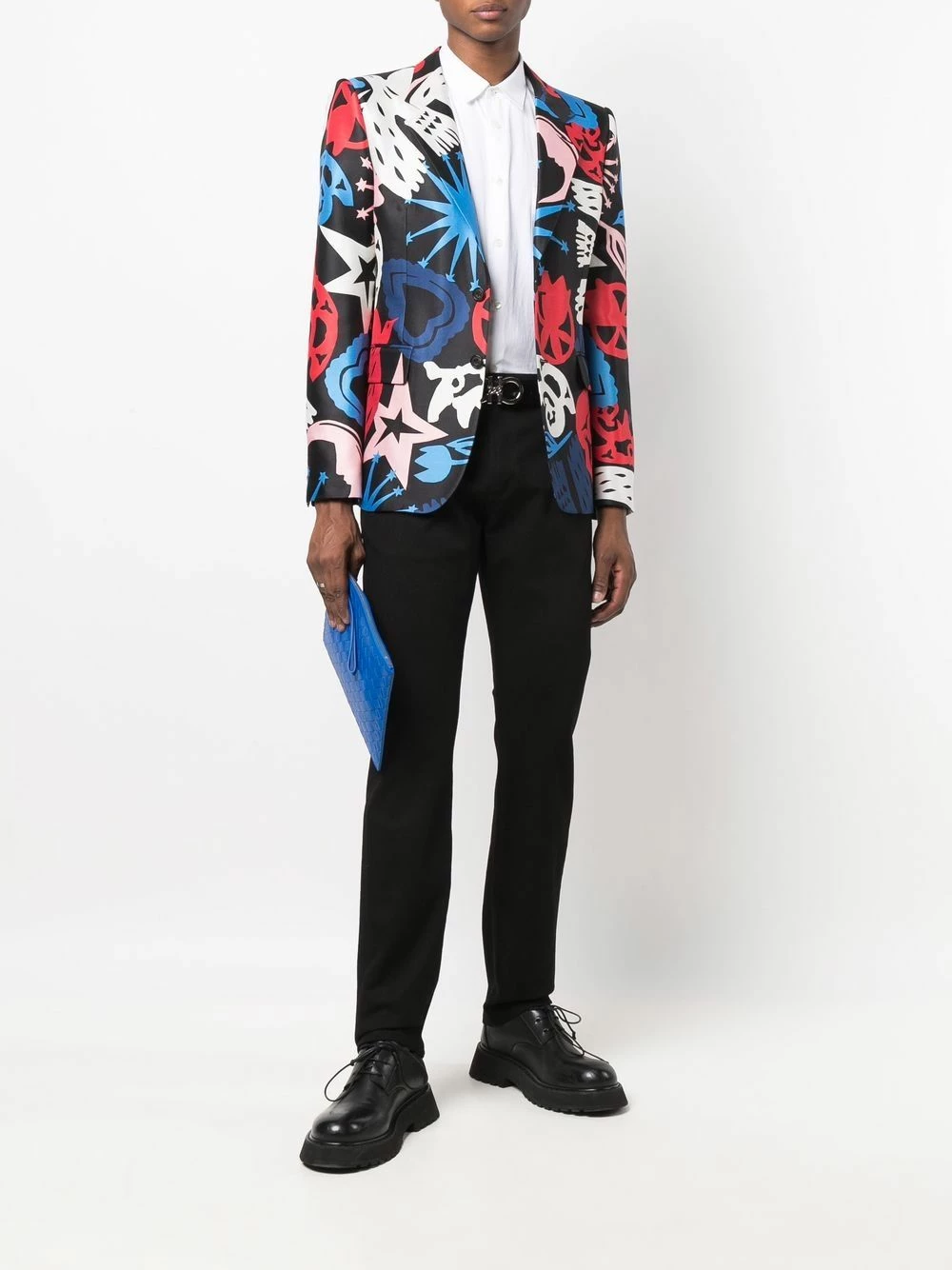 Alexander McQueen’s signature Papercut motif makes an appearance all over this blazer. Invoking the brand’s intriguing aesthetic, this multicolour print contrasts with the piece’s tailored cut.