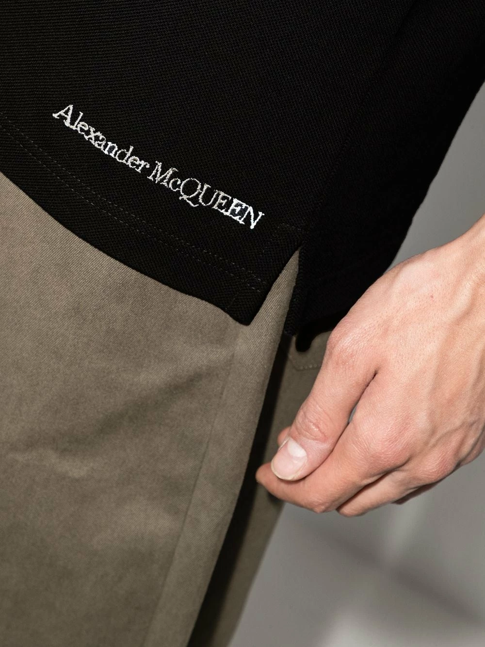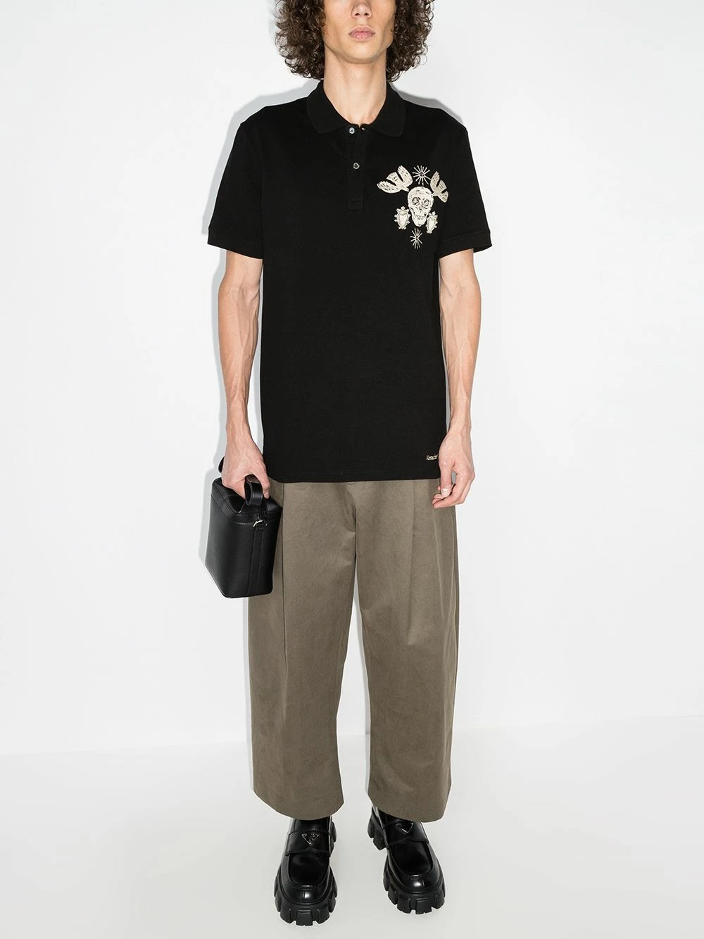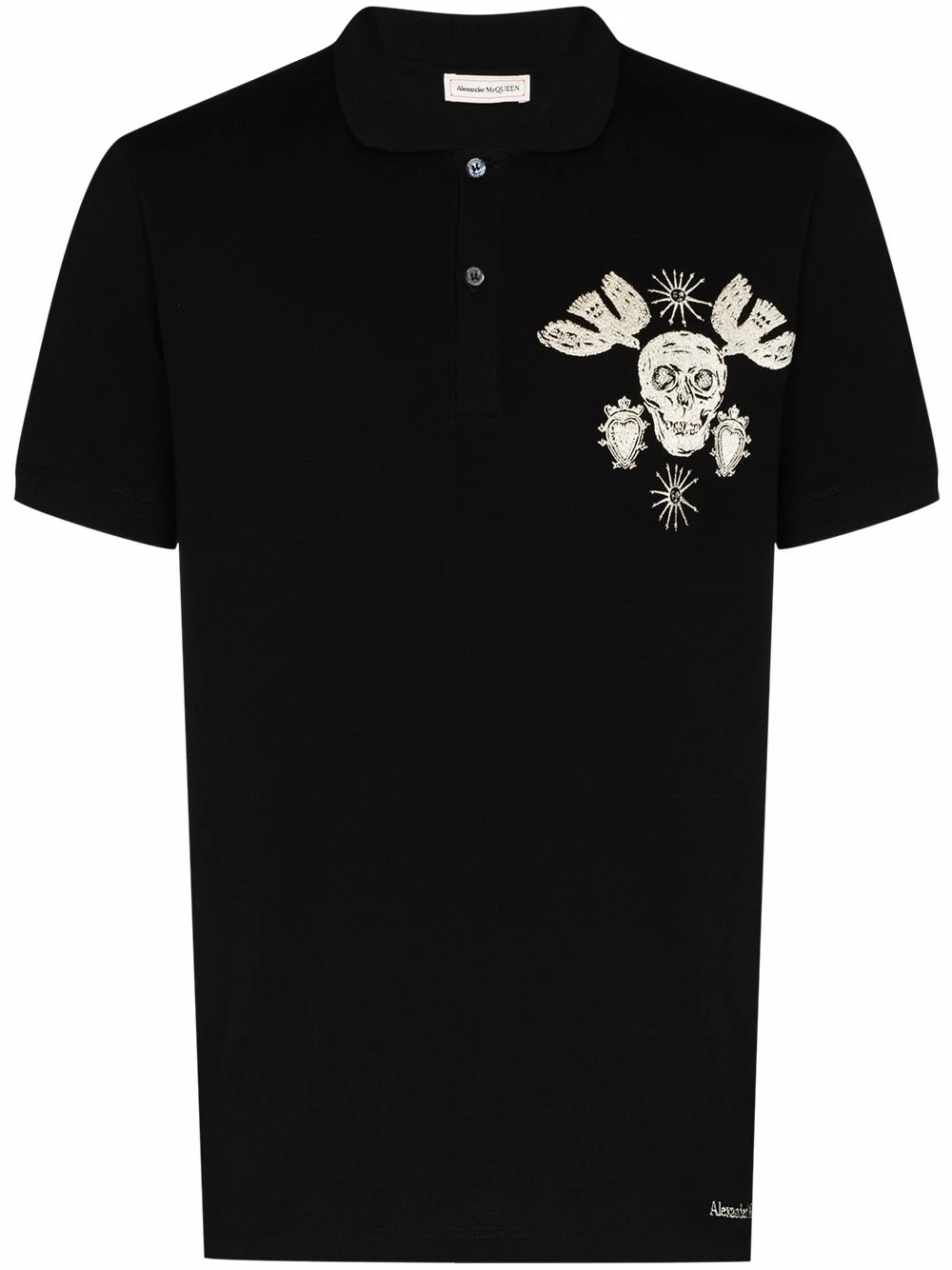 Dating back to the late Lee McQueen’s 1992 graduate collection, the ominous skull symbol continues to be at the heart of the British fashion House’s work. For AW21, it remains front and centre – shown in all its glory in a contrastingly white hue and embroidered at the chest of this polo shirt.