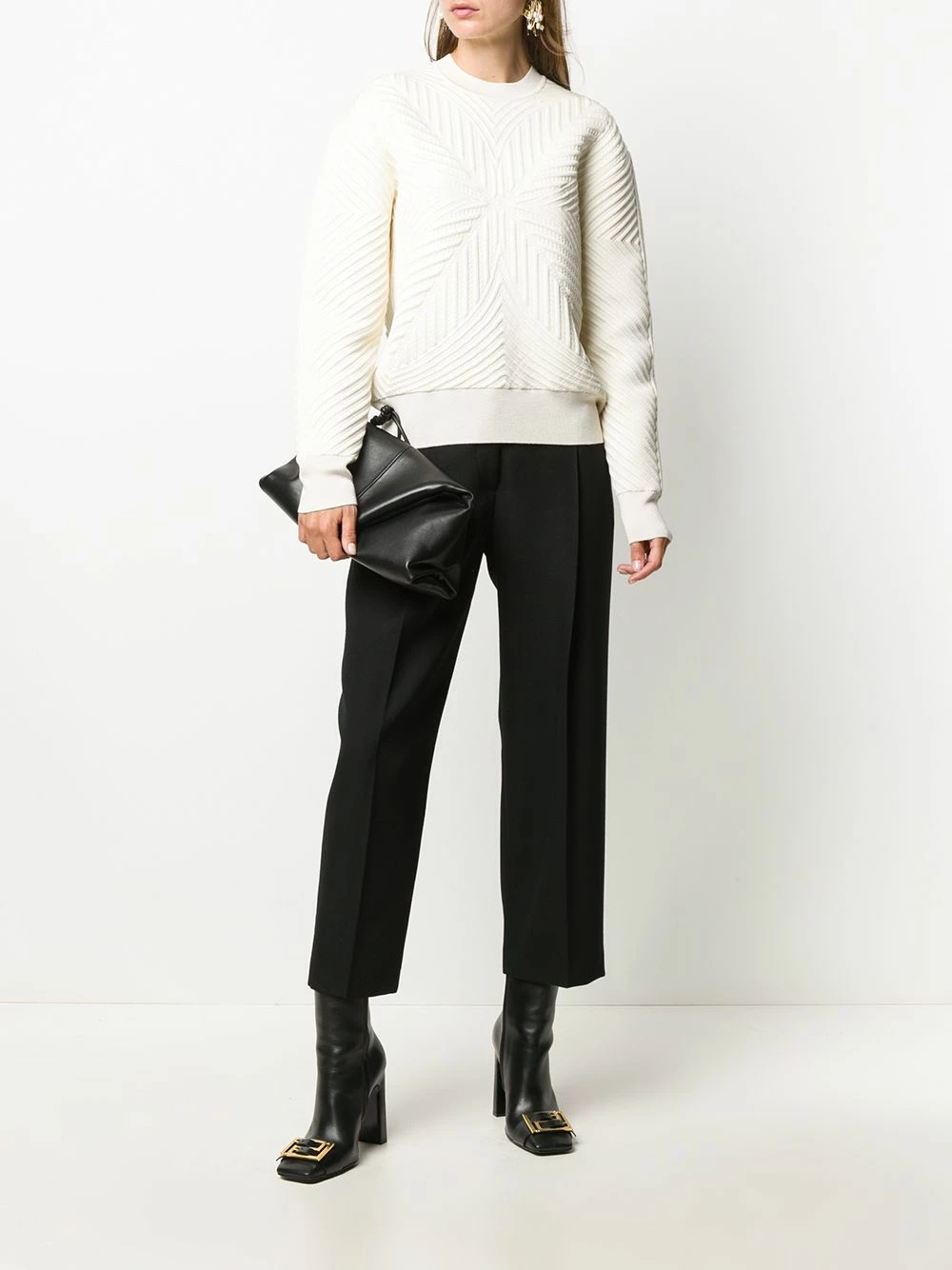 Add some texture to your ensemble with this patterned rib-knit jumper from Alexander McQueen. Made from wool, it will keep a comfy feeling all day. Simple, yet highly effective.