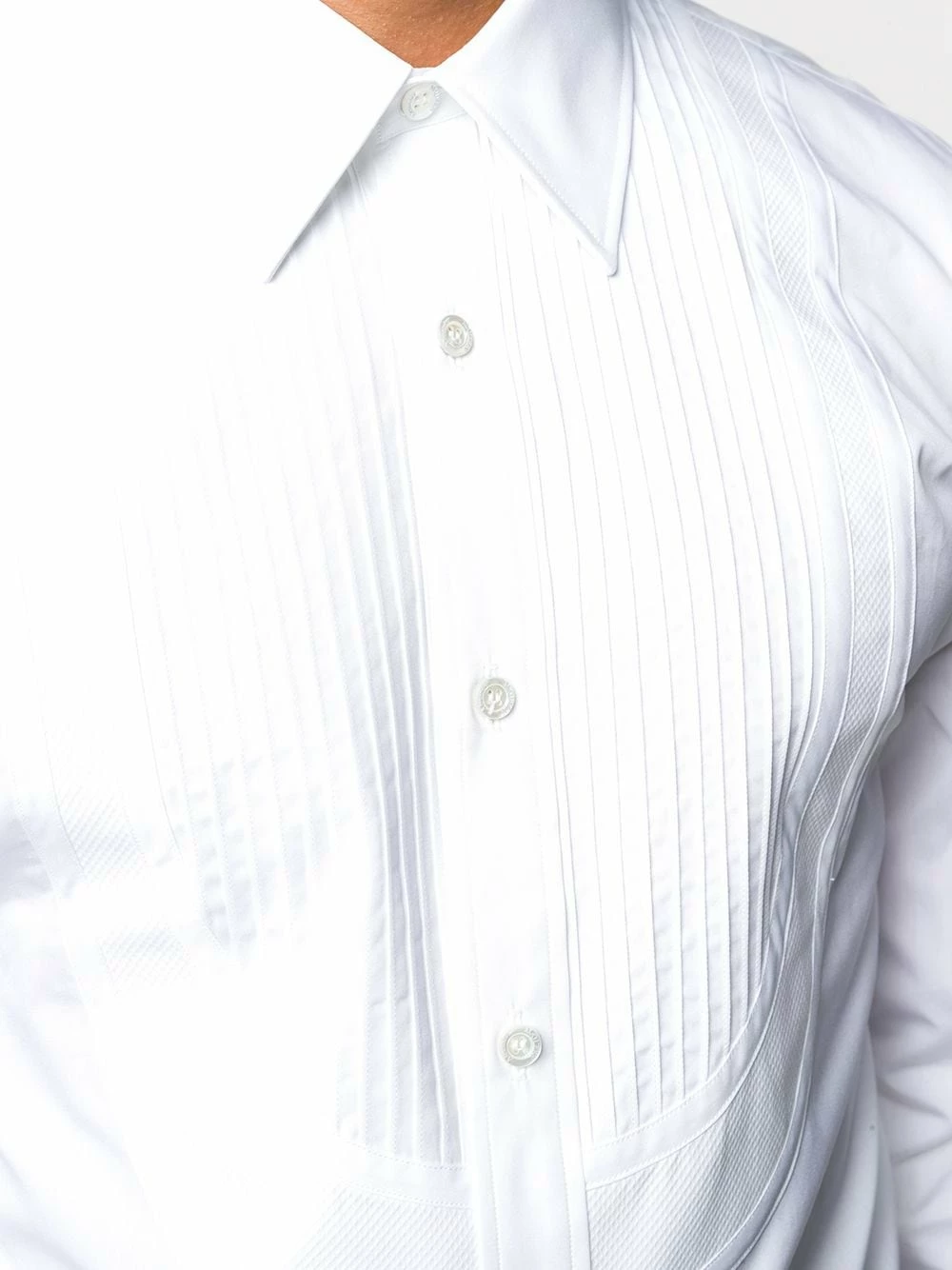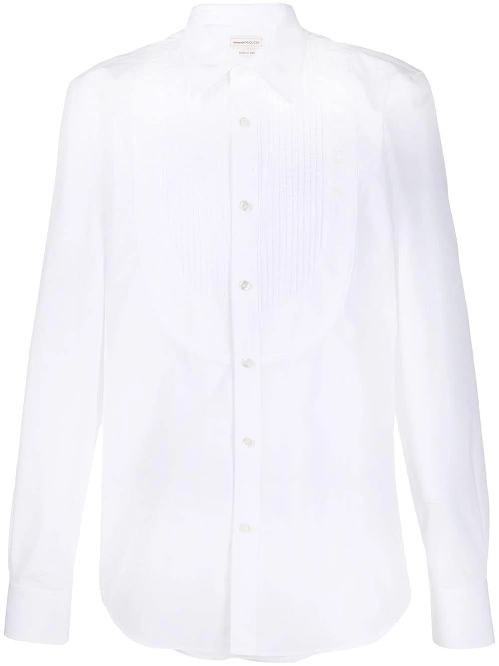 Look smart and stylish this season with Alexander McQueen’s pleated bib front shirt. Designed from crisp white cotton poplin, the long sleeved silhouette rethinks classic shirting. We like the sound of that.