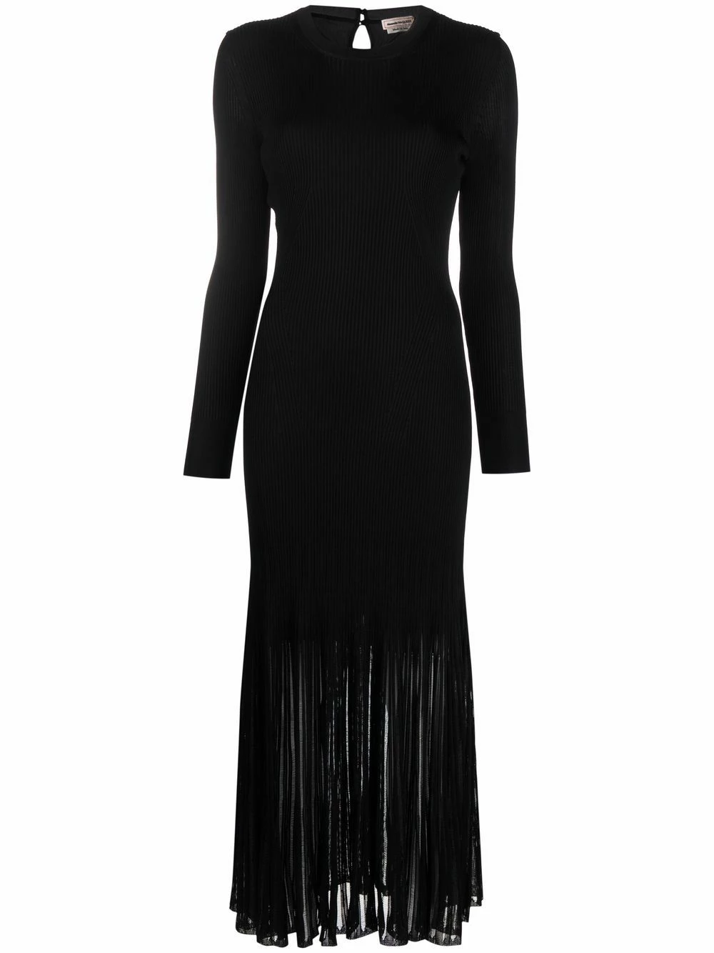 Alexander McQueen showcases its expertise in tailoring. Perfectly cut from stretchy knitted fabric, this timeless black iteration is accented with a fitted silhouette and an elegant midi-length.Â