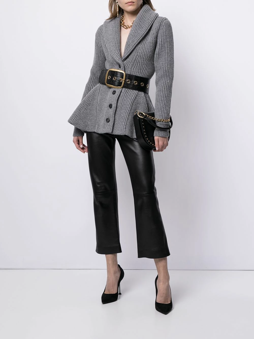 Alexander McQueen masters the art of sculpted knitwear with this rib-knit peplum cardigan. Made from wool and designed with a fit-and-flare silhouette, this unique piece ideal for when smart layering is a must.