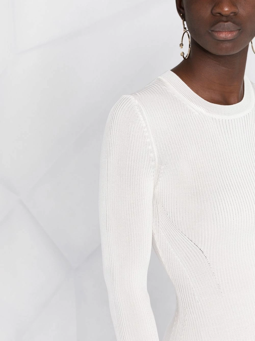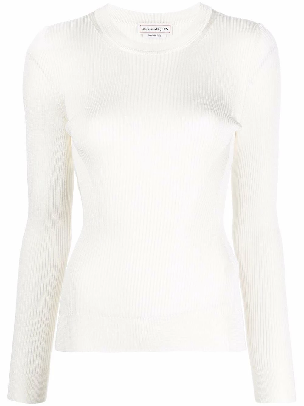 Designed in a ribbed construction, this white long-sleeve top from Alexander McQueen has a form-fitting silhouette.