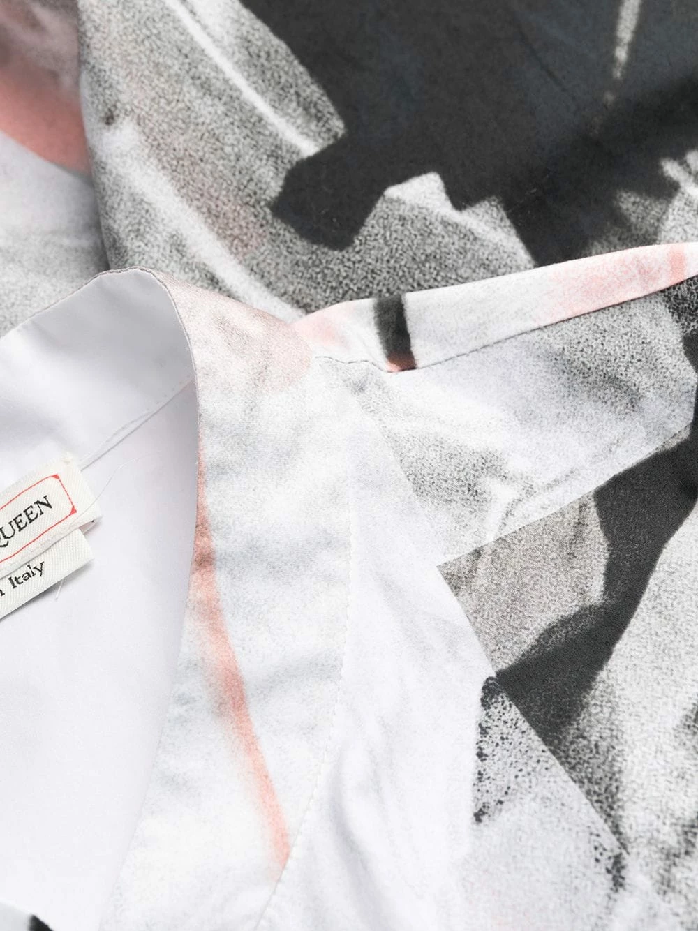 Update your wardrobe with the help of Alexander McQueen. This white, pink and black cotton rose-print shirt is a step up from your average bouquet. No water required.