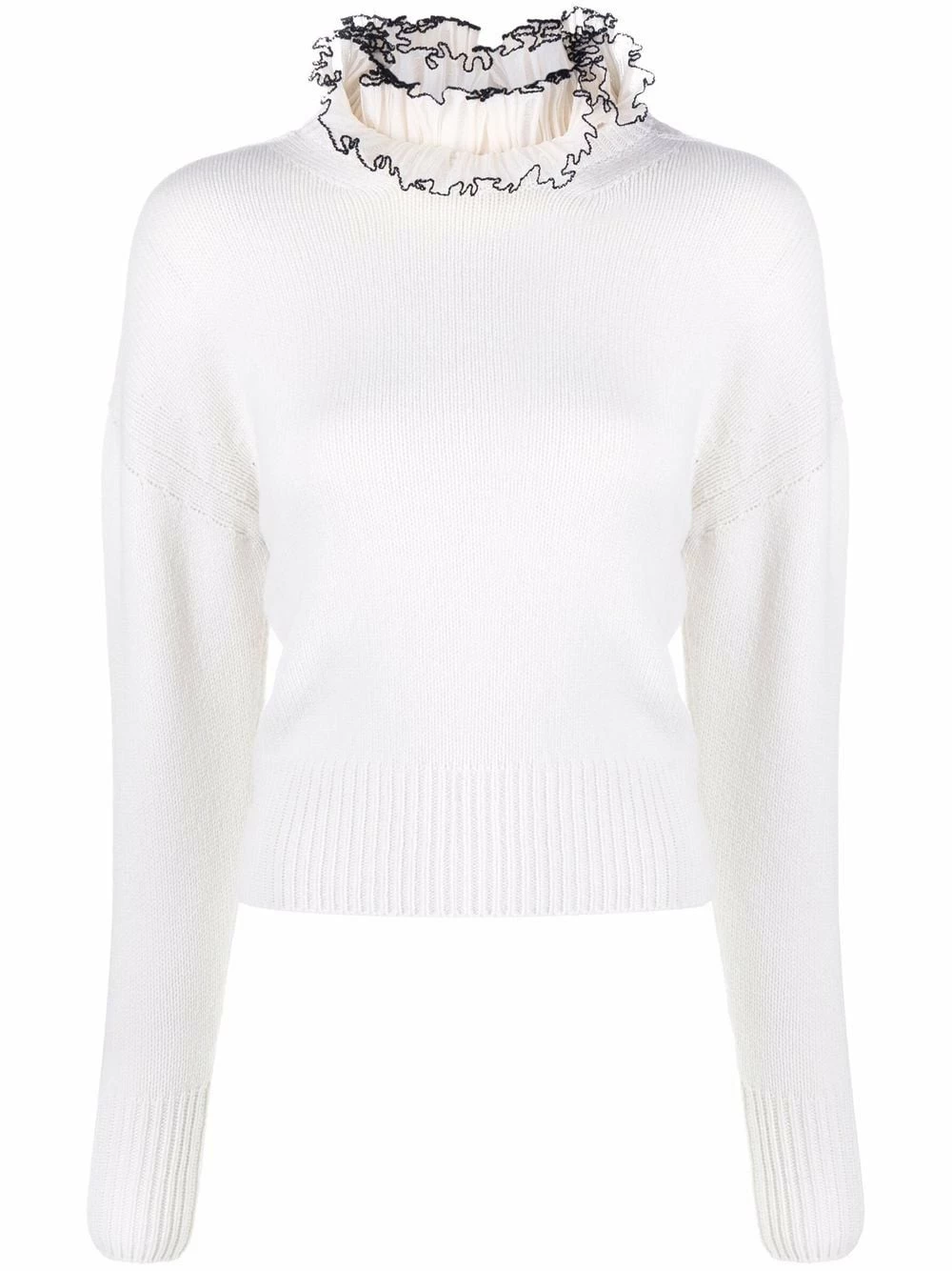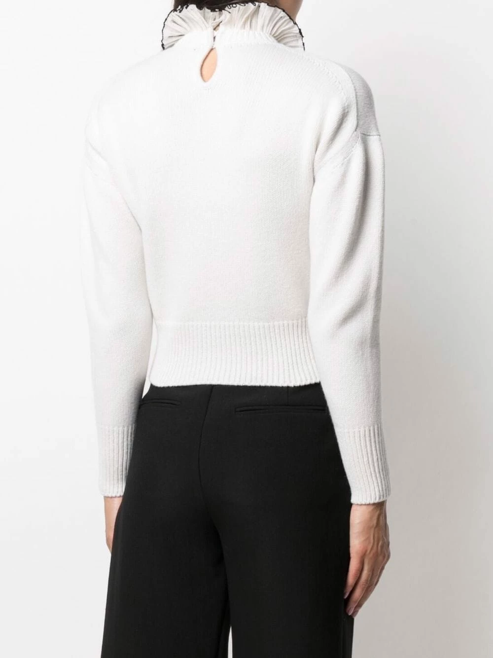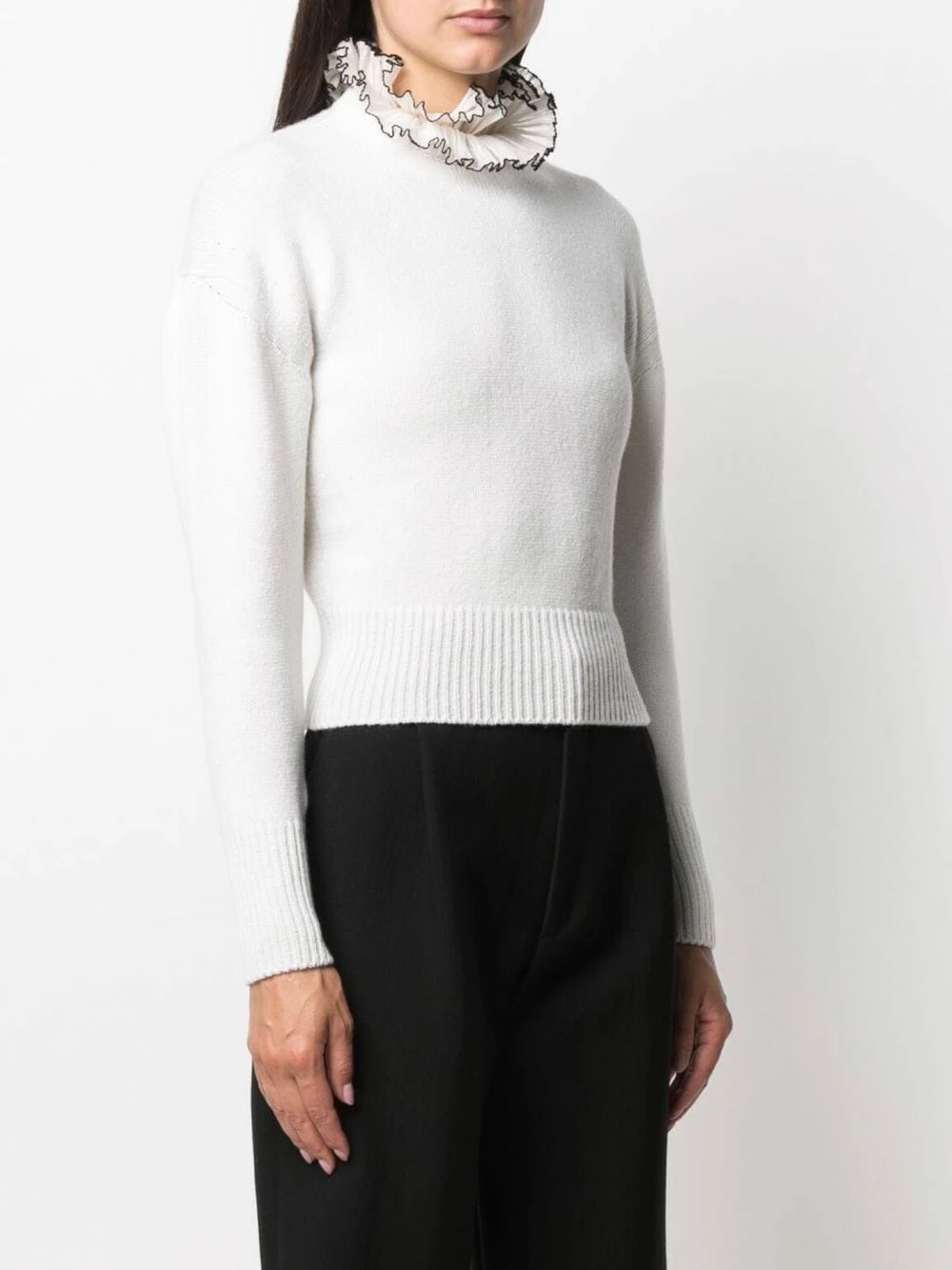 Alexander McQueen are known for pushing boundaries and presenting razor-sharp tailoring over the years, reflected within each season. The proving point being this top, perfectly blending the soft and classic design of knitwear with a very retro-inspired ruff collar to take the piece to new heights.