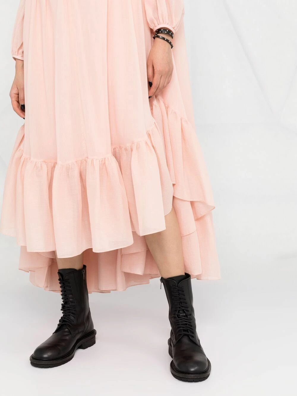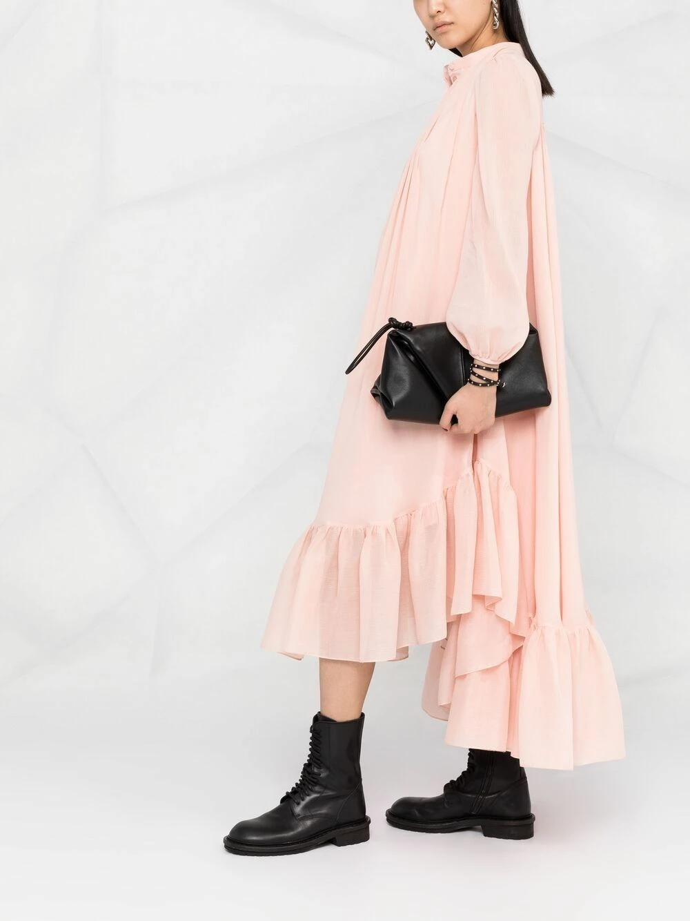 Take your dress selection to the next level. Known for its house codes of gothic glamour, this Alexander McQueen dress, with a ruffled, asymmetric hem does just that. Get ready for compliments.