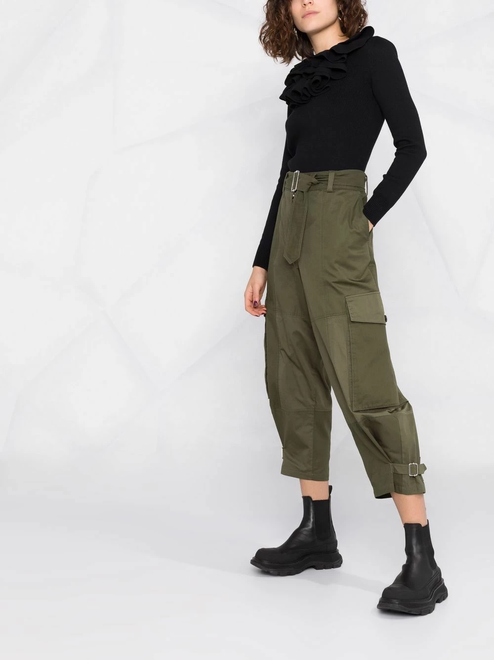In a reinvention of classic knitwear, Alexander McQueen presents this white-hued jumper. Adorned with ruffle detailing, this piece adds an exciting twist to this wardrobe staple, maintaining high comfort levels thanks to a soft wool-cotton blend composition.Â