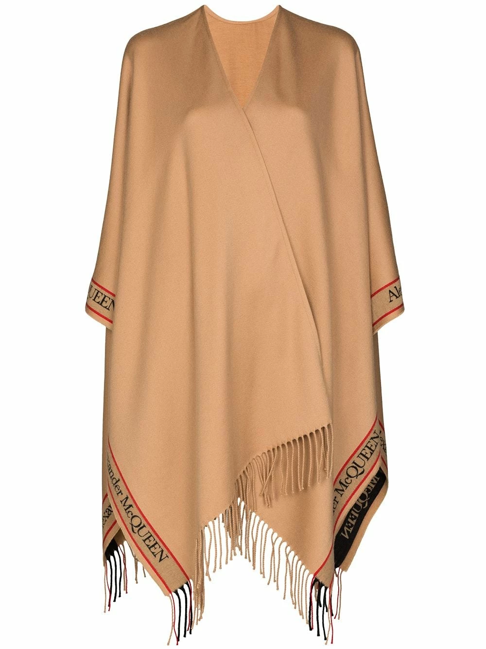 Beat the chill in style with Alexander McQueen’s cape. Spun camel cashmere and wool-blend that feels so soft to the touch, it’s trimmed with wispy fringing punctuated with the brand’s Iconic stripe. Roll on winter.