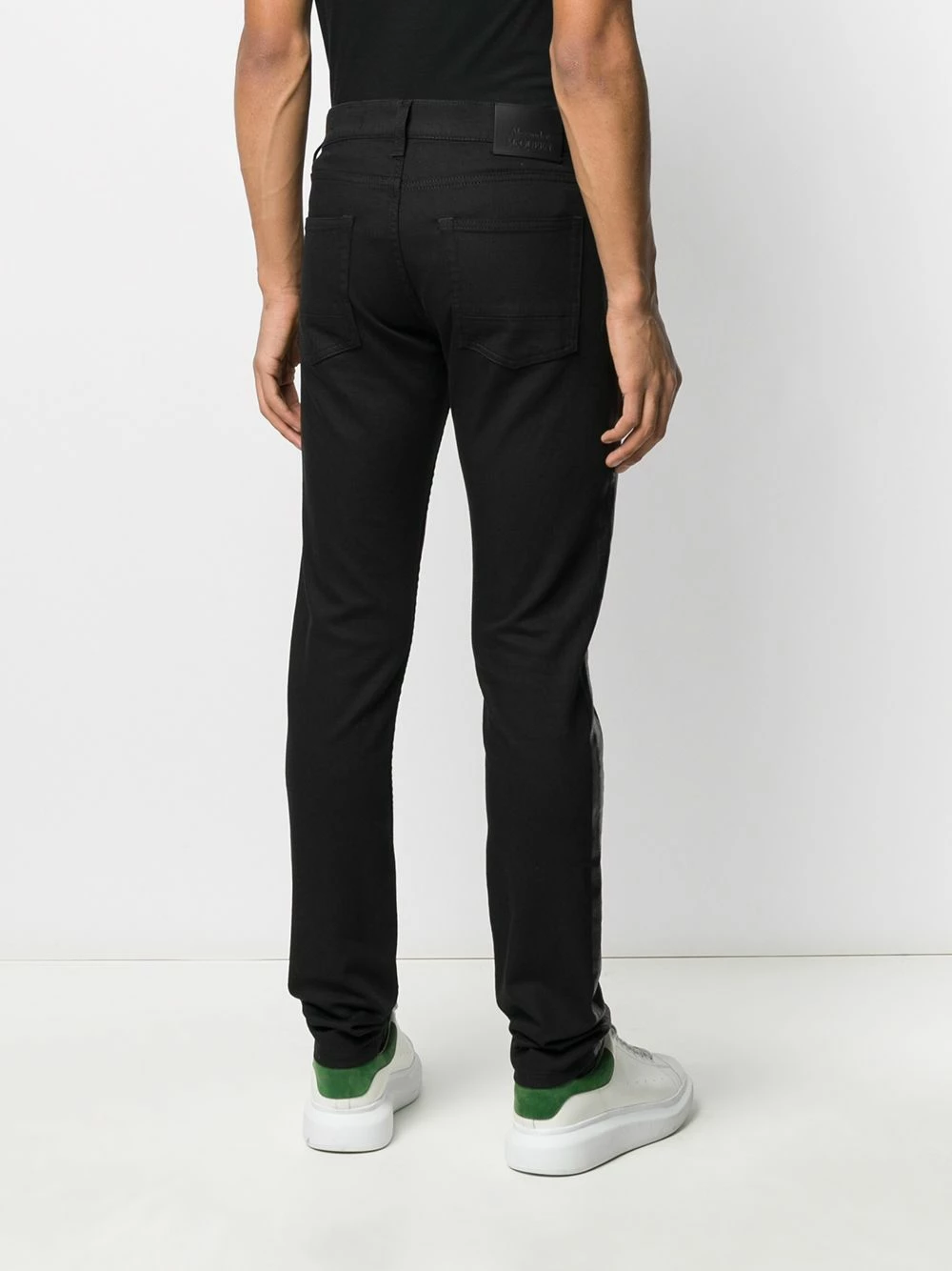 If these black stretch cotton side tape straight jeans from Alexander McQueen could speak, do you know what they would say? “Better late than never, just don’t make me wait forever”, just like Tame Impala taught us. Your call! Featuring a five pocket design, belt loops, a button & zip fastening, a leather brand patch to the rear, a straight leg and a regular length.