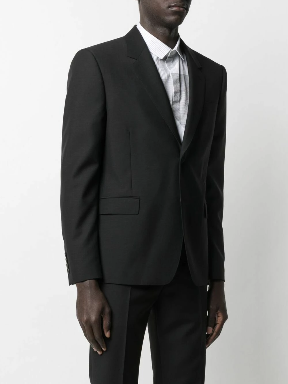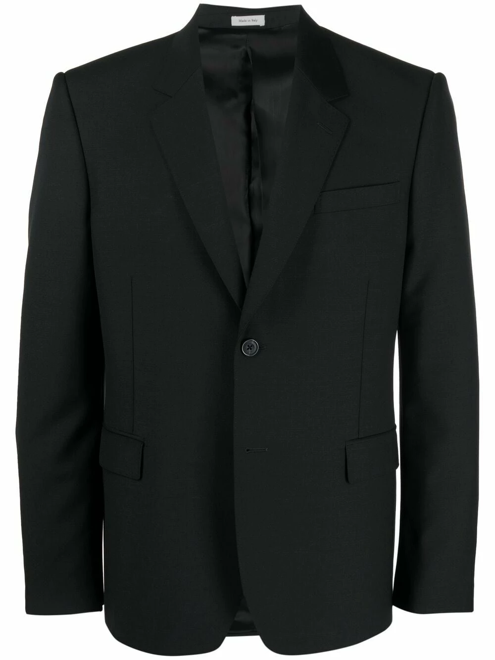 Exude style and sophistication in this single-breasted suit jacket from Alexander McQueen. Made from a wool-mohair blend it is designed with notched lapels and a tailored aesthetic.