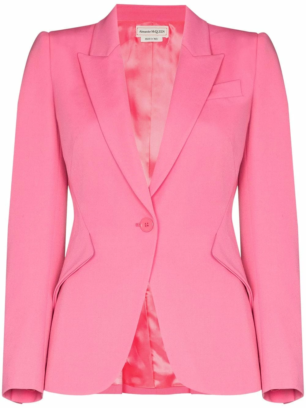 Can you imagine the look on Regina George’s face when you show up with this Alexander McQueen blazer? Constructed from wool and boasting a beotny-pink hue, this piece will be the reason for all the chit-chat around you. Sorry Regina, you’re no longer the leader.