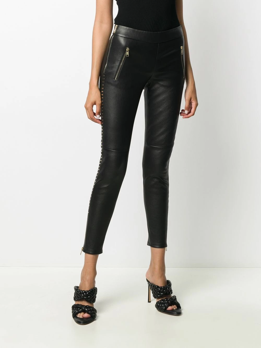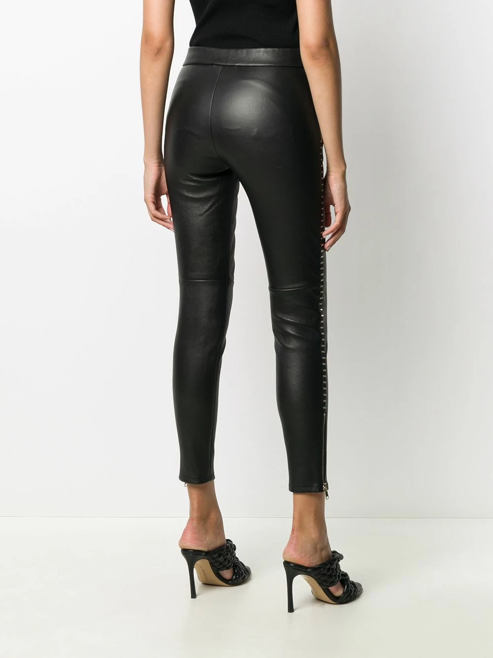 Rock ‘n roll, but make it fashion. Made from black lambskin, these skinny trousers from Alexander McQueen are detailed with silver-tone staples to the sides for added edge. Take your casual looks to the next level.