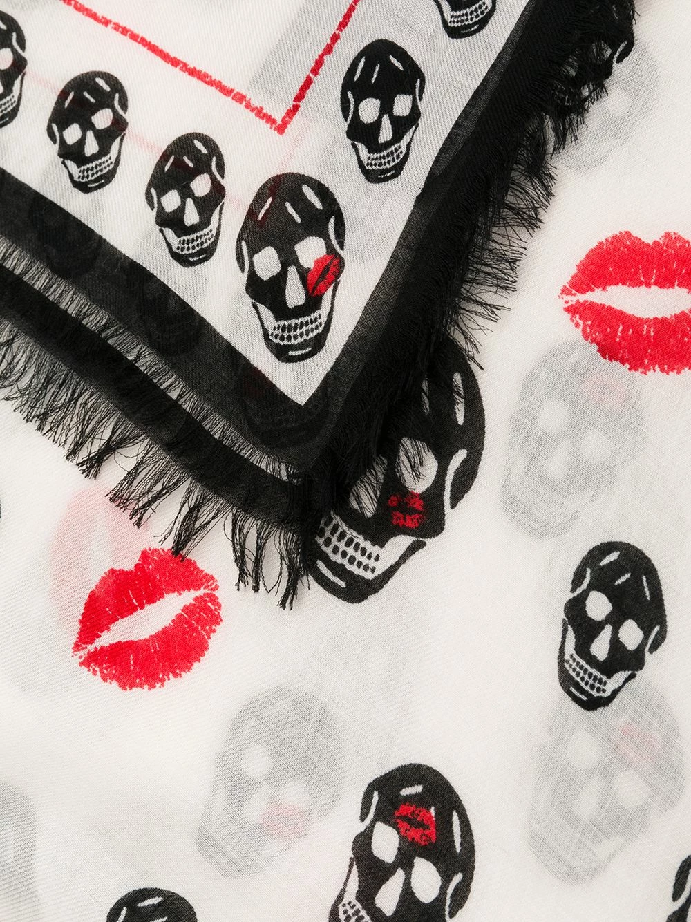 Incorporate Alexander McQueen’s signature skull motif into everyday looks with this iconic black, red and white scarf. Featuring fringed edges and a logo print, this coveted skull and lips stamped piece exudes edge and sophistication; trademarks of the Alexander McQueen brand.