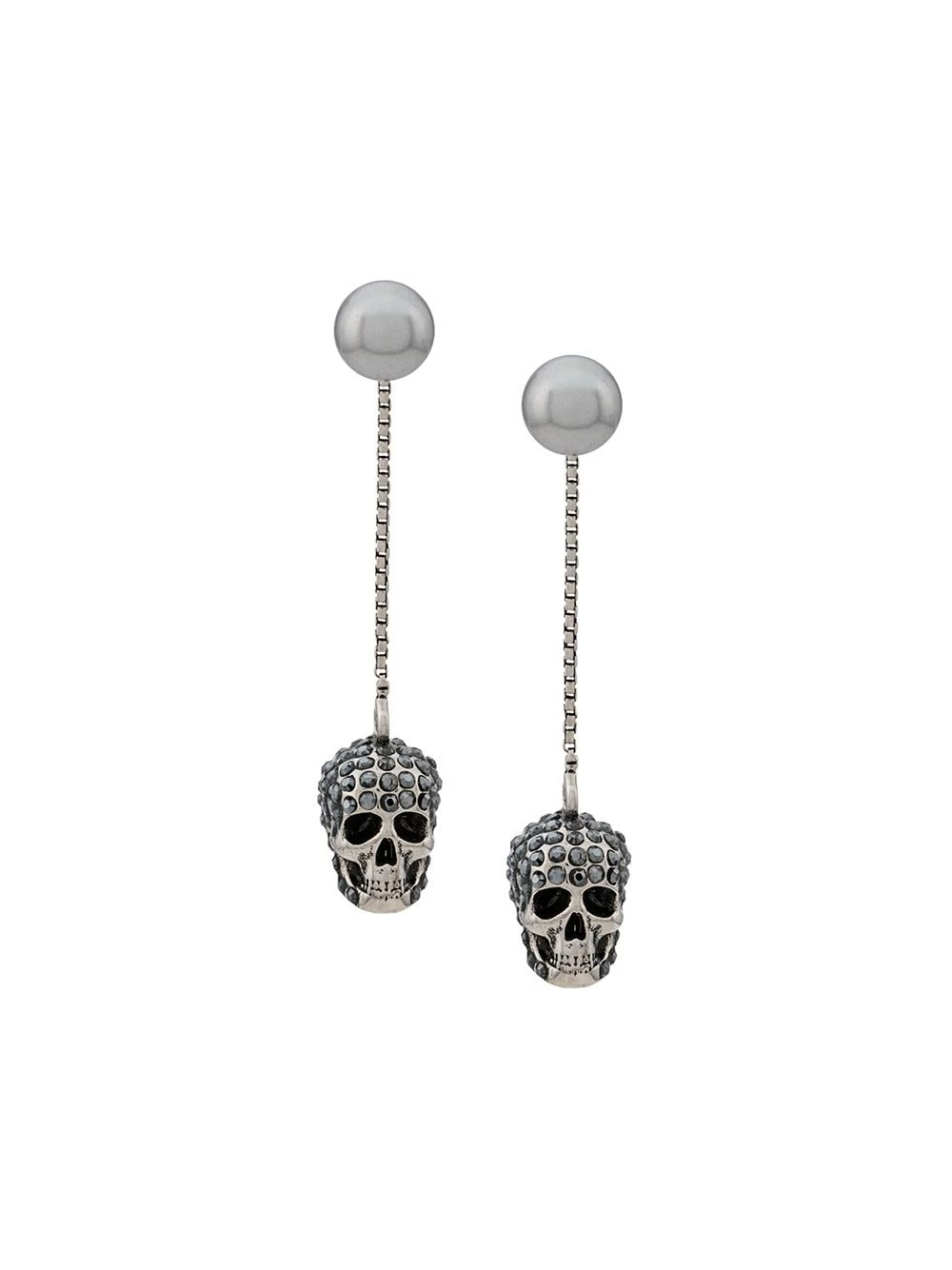 Alexander McQueen is renowned for being the champion of eye-popping theatrics, toughening up everyday accessories with gothic romanticism as seen in these skull embellished drop earrings. Featuring a clip on fastening and crystal embellishments. These earrings come as a pair.
