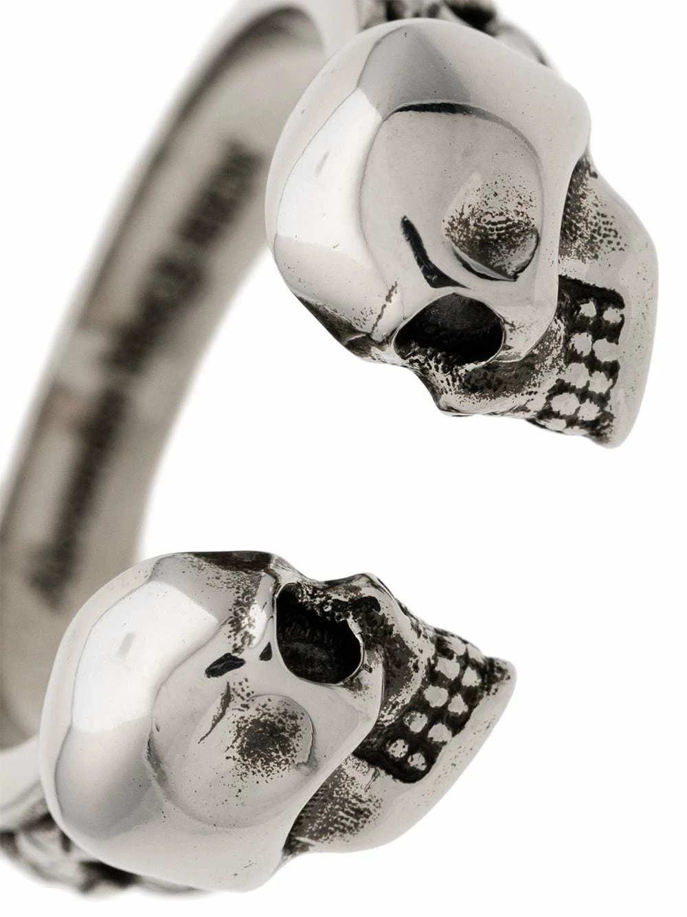 For many years, the skull has been a long-standing emblem of Alexander McQueen, capturing the brand’s dark yet alluring essence. Made from brass, this silver-tone ring features the brand’s signature skulls and an engraved design.
