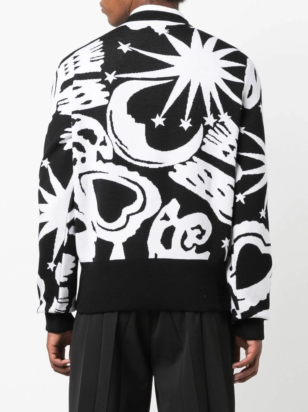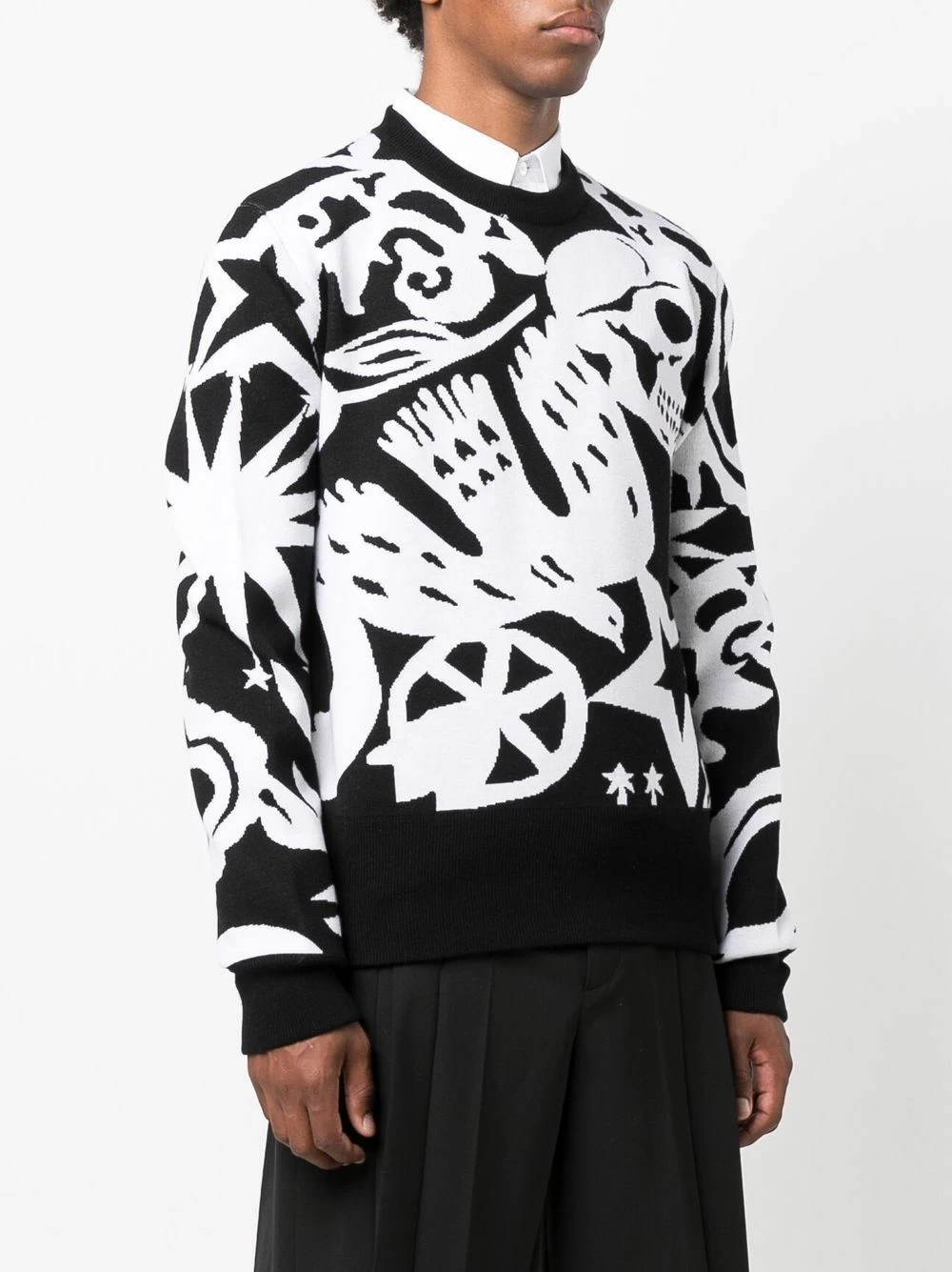 Alexander McQueen’s fondness for the dark was instilled by the label’s late founder and is captured in the pattern of this jumper, which include with skulls and stars.