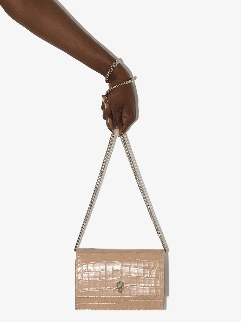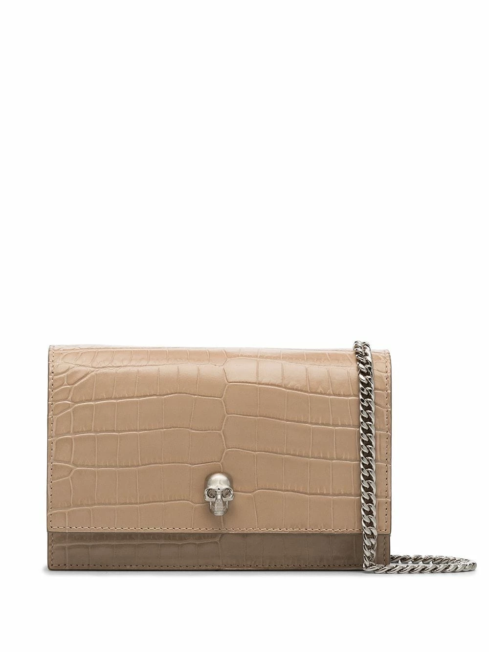 Do you know what chills us down to our bone? The idea of not having this Skull shoulder bag in our closet. Constructed from a nude-beige that will match every outfit and boasting an unmistakable skull detail, it’s just spooky, not having some Alexander McQueen around us.