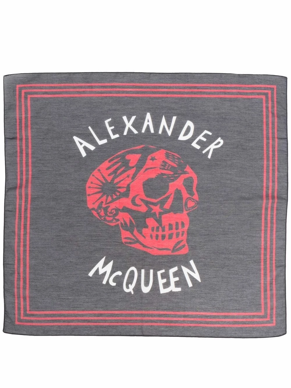 Black/red cotton-silk blend skull-logo print scarf from Alexander McQueen featuring logo print to the front, skull print, solid border and finished edge.