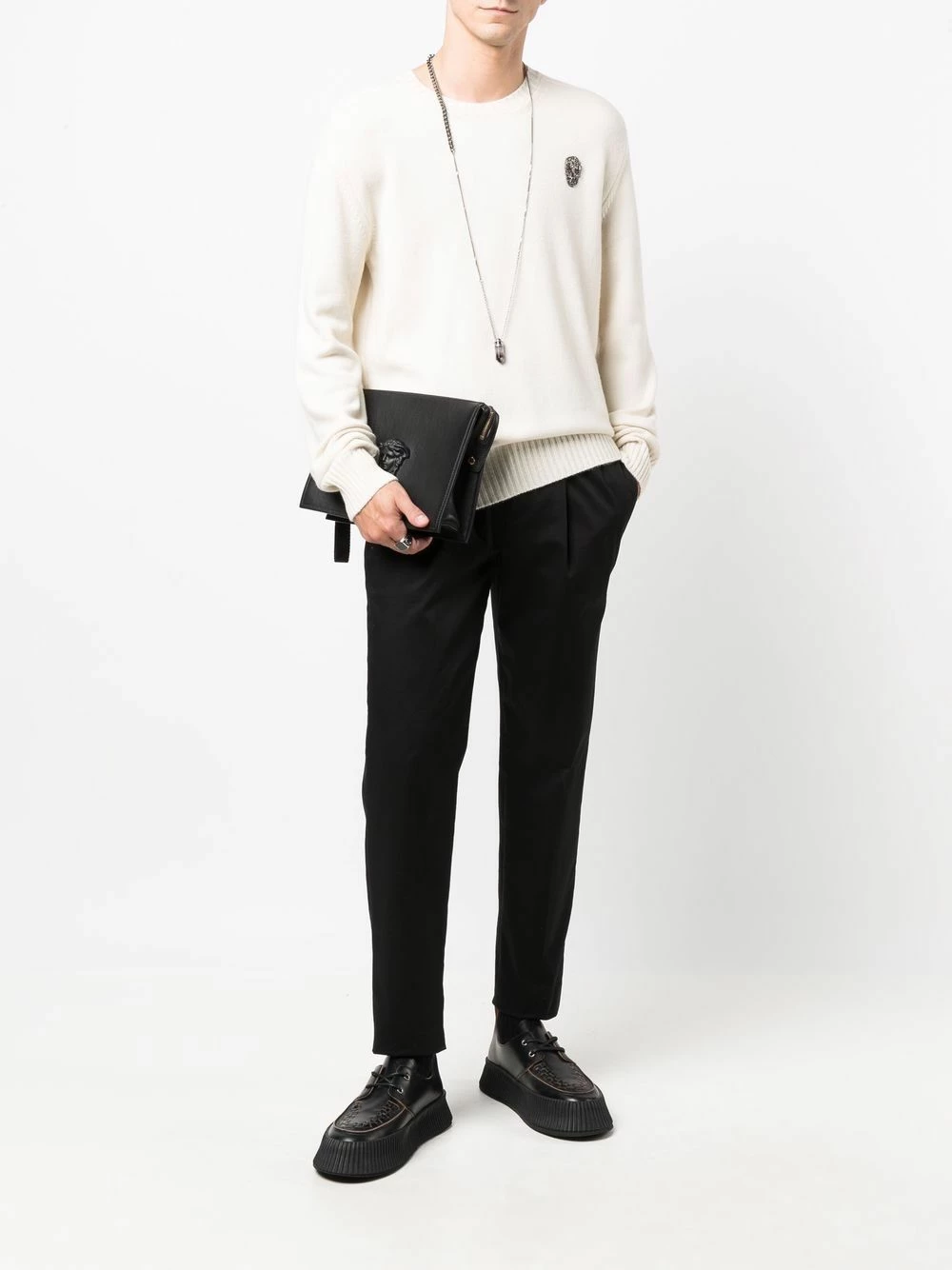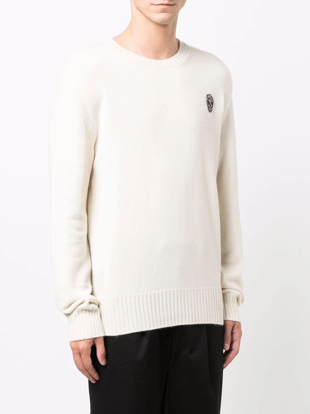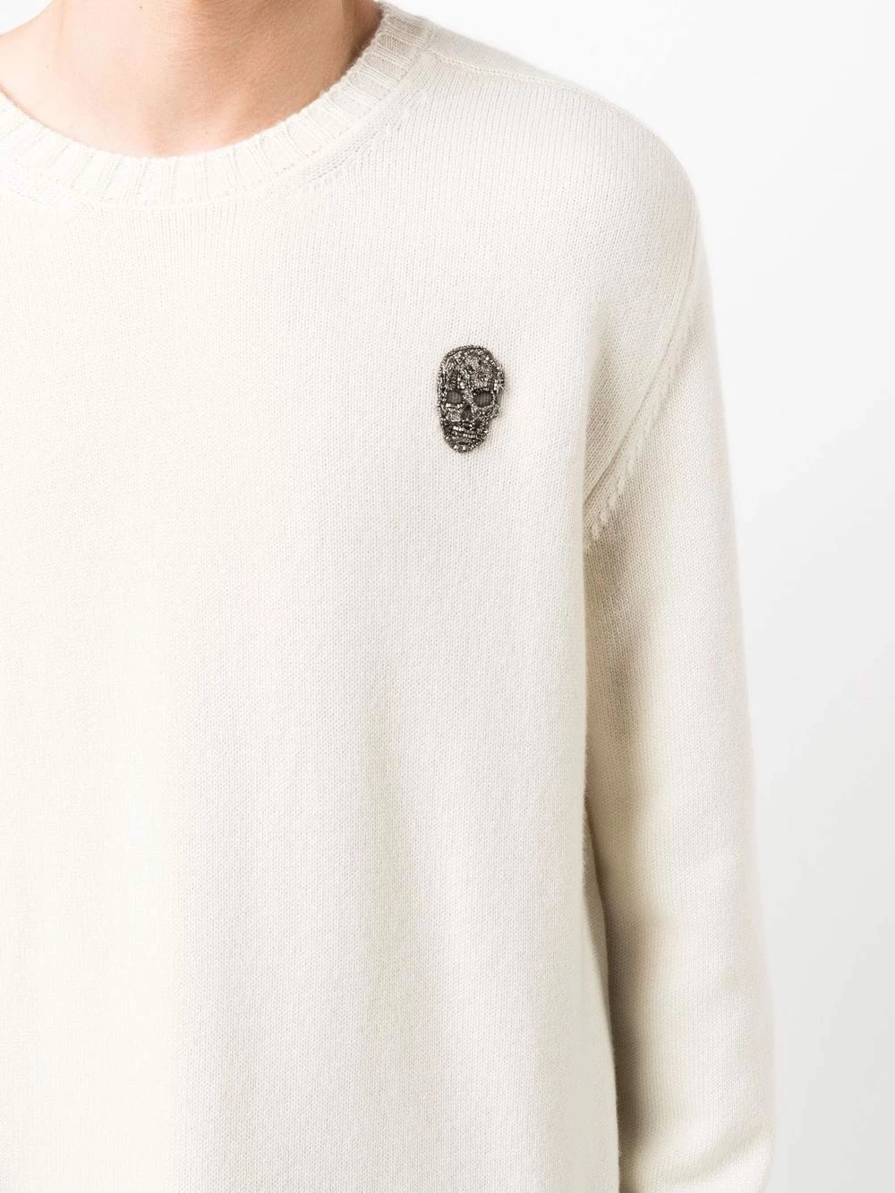 Staying true to the intrinsic DNA of Alexander McQueen, this cashmere-spun jumper is decorated with a skull motif. The skull patch at the chest is embroidered with beading for a touch of glamour to this otherwise understated knitwear staple.