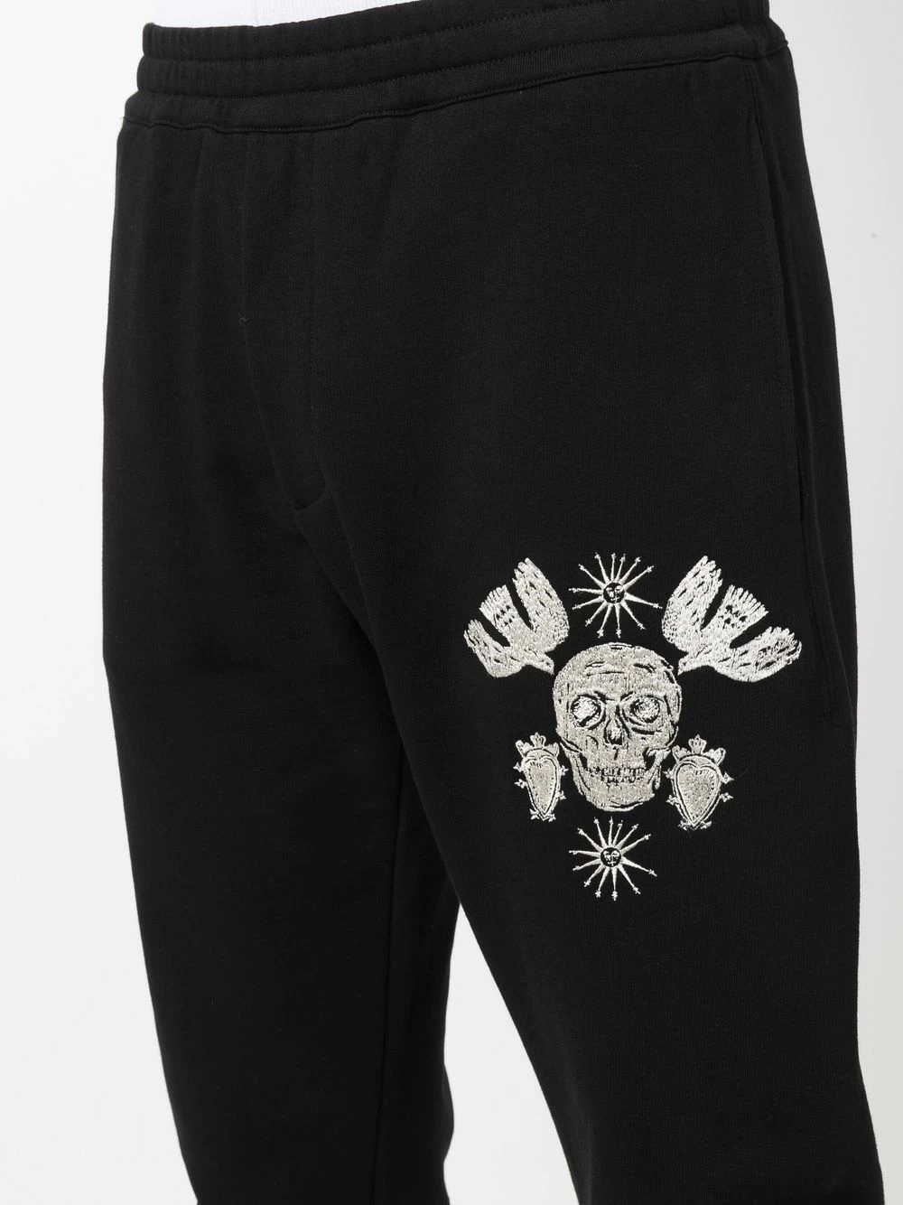 A recurring motif throughout all Alexander McQueen’s collections, the skull goes back to the very first presentation of the designer. It has been embroidered in these track pants, removing the need for further branding.