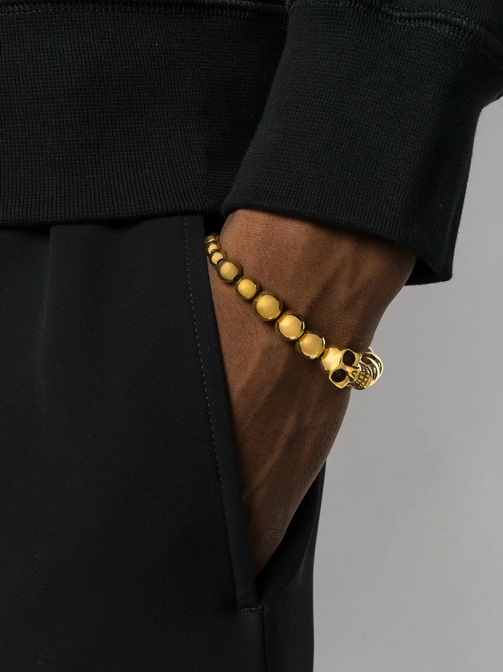 Incorporate Alexander McQueen’s signature skull motif into everyday looks with this gold-tone brass multibeaded bracelet. Featuring gold-tone hardware, an elasticated bracelet and an engraved skull.