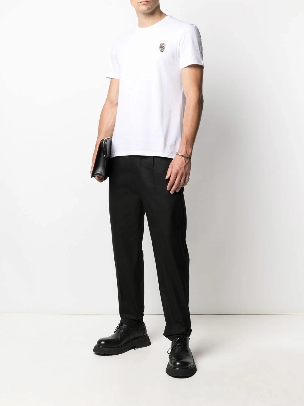 Dating back to the late Lee McQueen’s 1992 graduate collection, the ominous skull symbol continues to be at the heart of the British fashion House’s work. For AW21, it remains front and centre, in patch form on this white T-shirt.