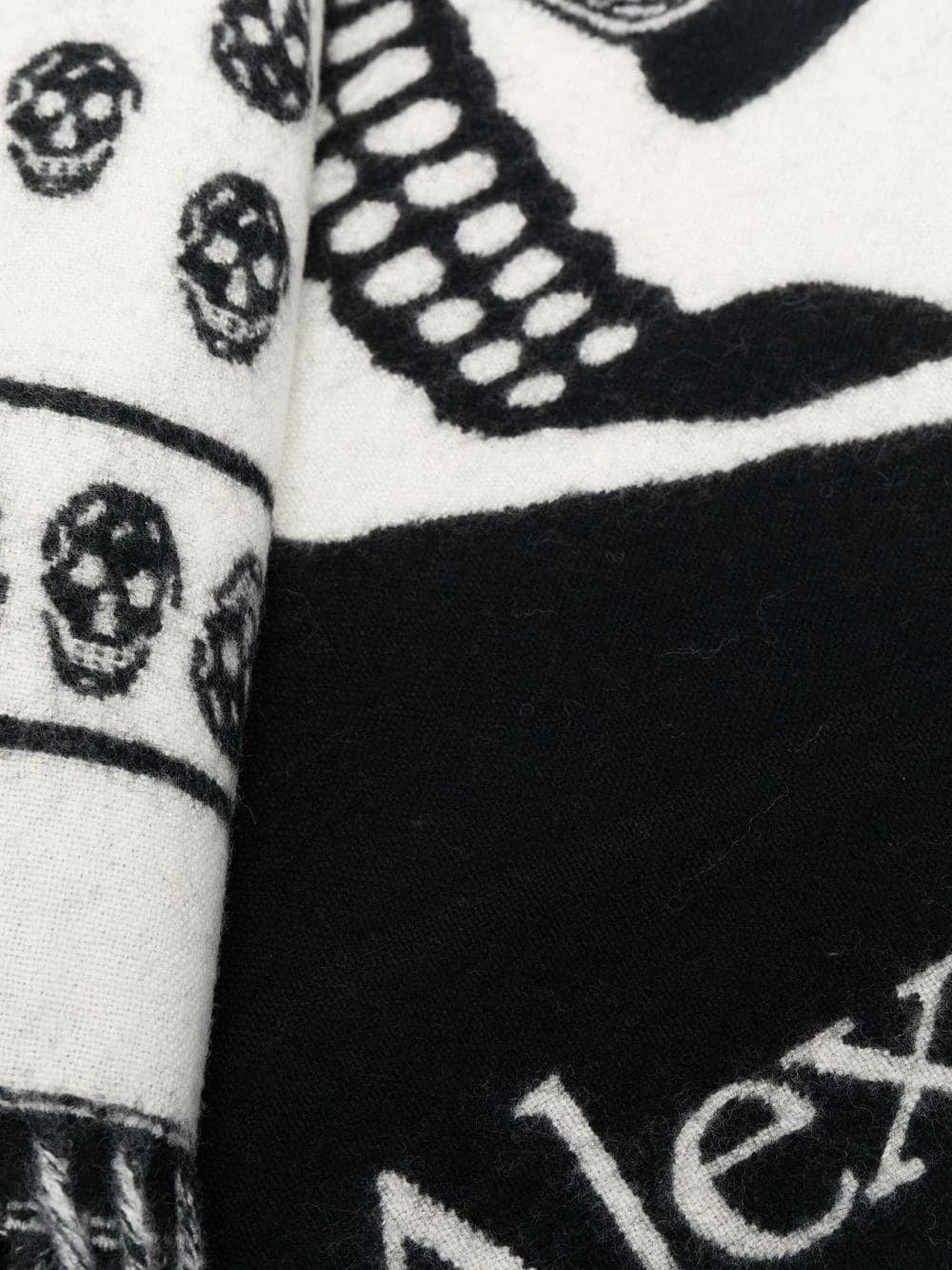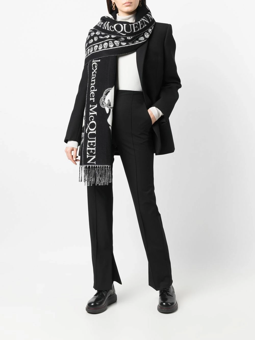 Detailed with Alexander McQueen’s signature skull motif, this scarf stays true to the label’s alluring identity. Its intarsia design is finished with a bold front logo for an unmistakable finish.