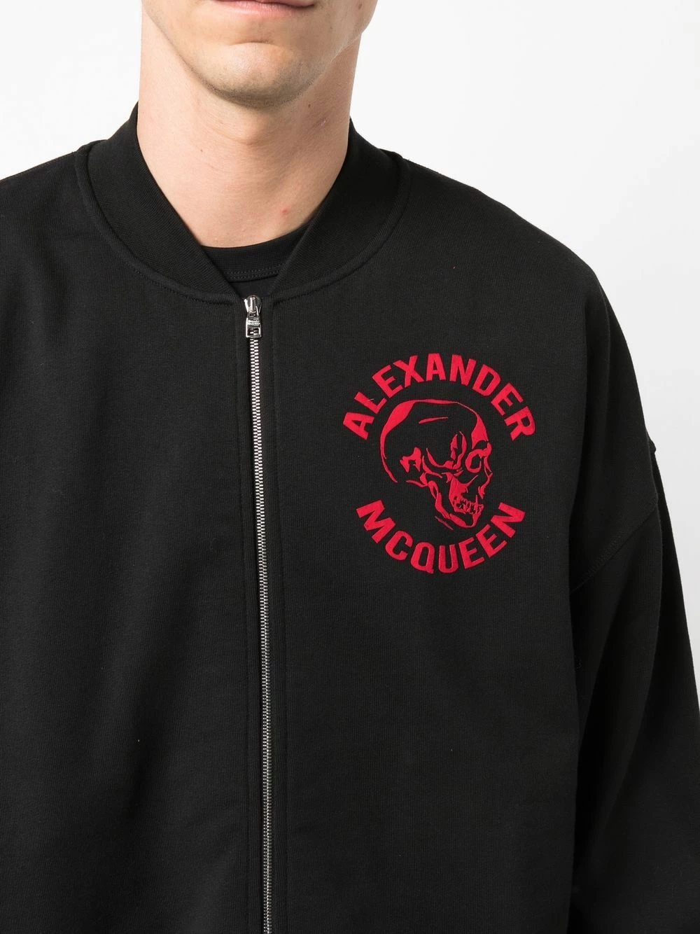Dating back to the late Lee McQueen’s 1992 graduate collection, the ominous skull symbol continues to be at the heart of the British fashion House’s work. For AW21, it remains front and centre – shown on this bomber jacket.