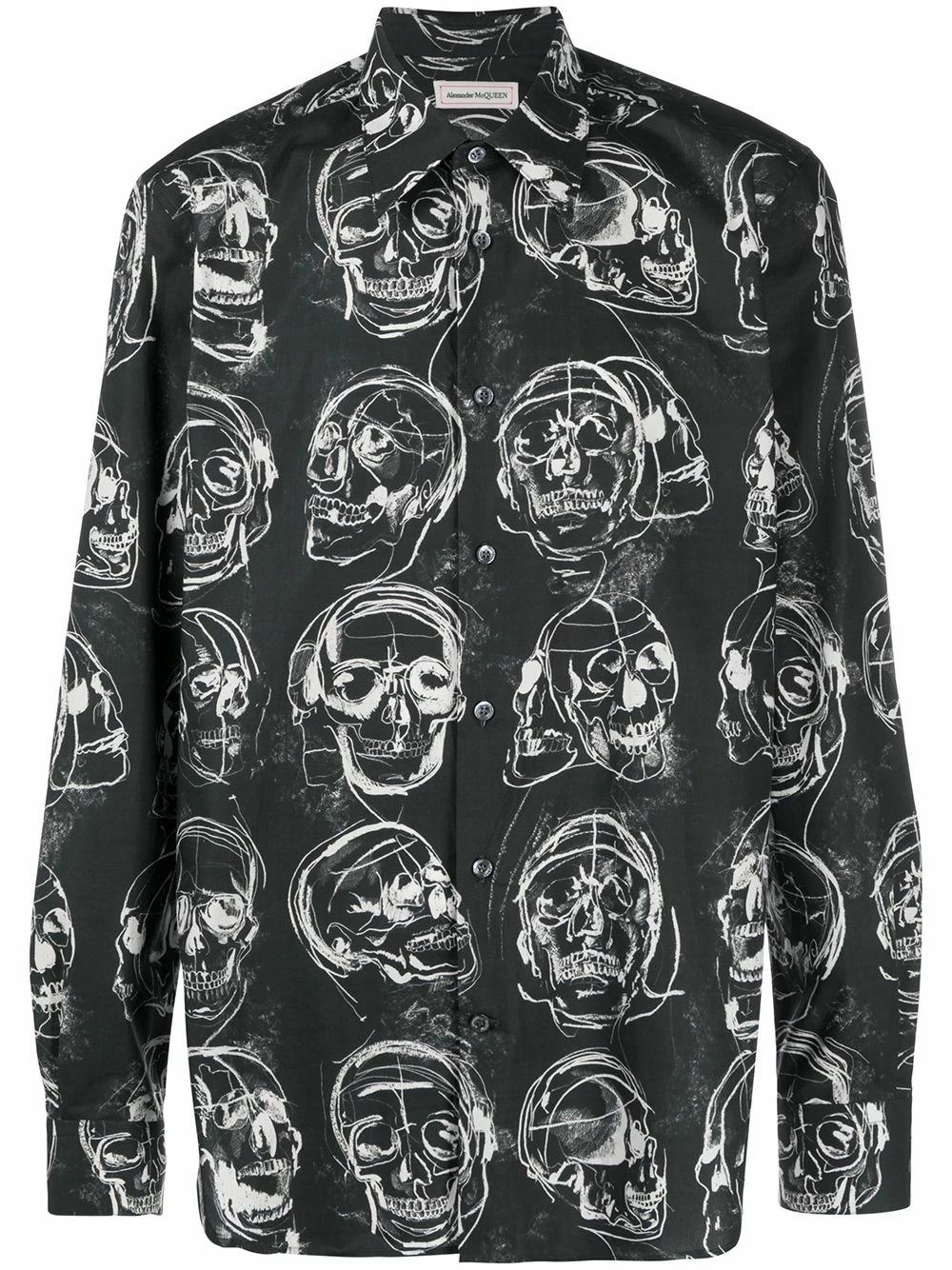When it comes to skeletons in your closet, make sure they’re Alexander McQueen. Enveloped in illustration-style skull motifs, this black and white cotton shirt makes a striking addition to your wardrobe. There’s no time for boring shirts.