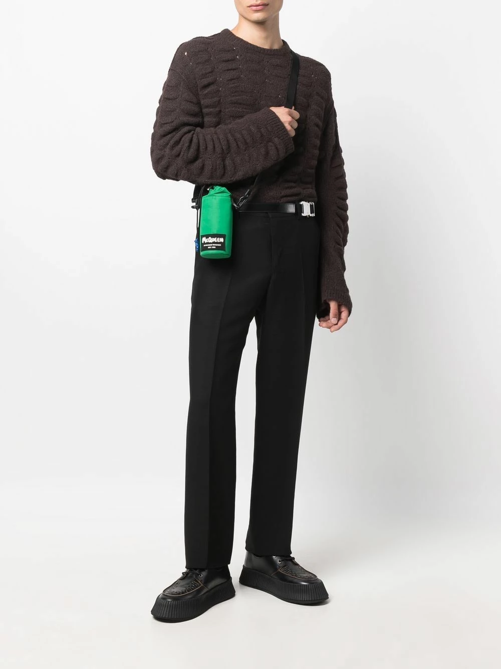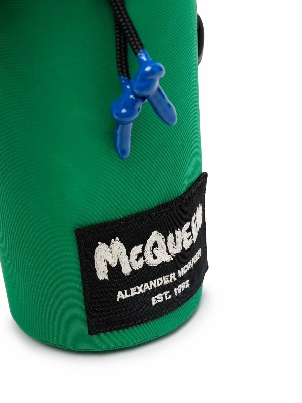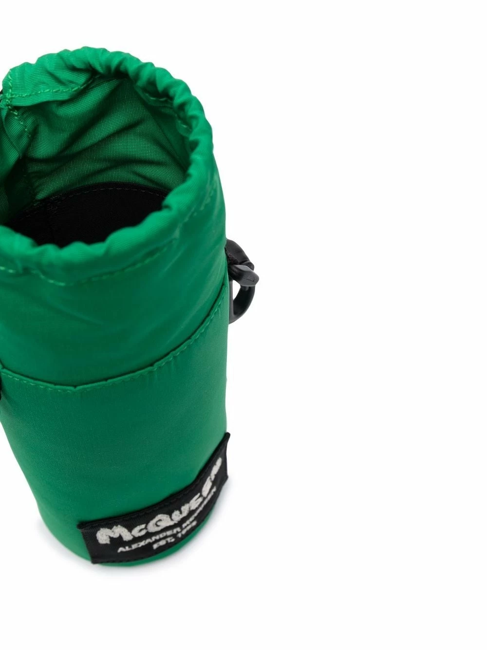 Jade-green/black/white small logo-patch messenger bag from Alexander McQueen featuring logo patch to the front, main compartment, drawstring fastening and adjustable shoulder strap.