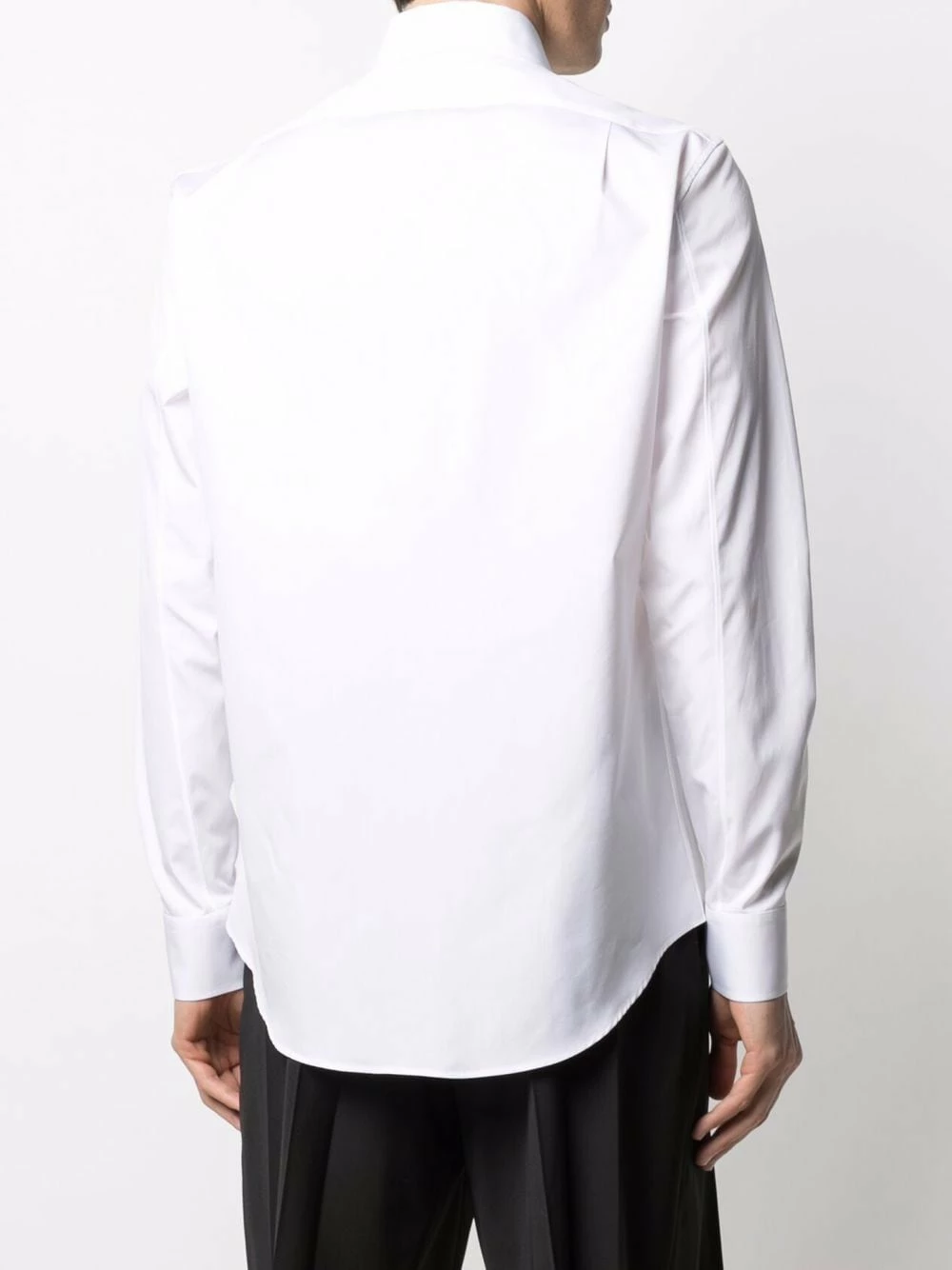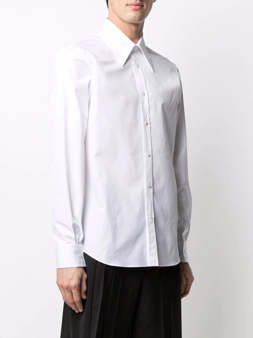 Switch up your shirting collection with Alexander McQueen. This straight-point collar shirt is a modern take on classic styles. In with the new.Â