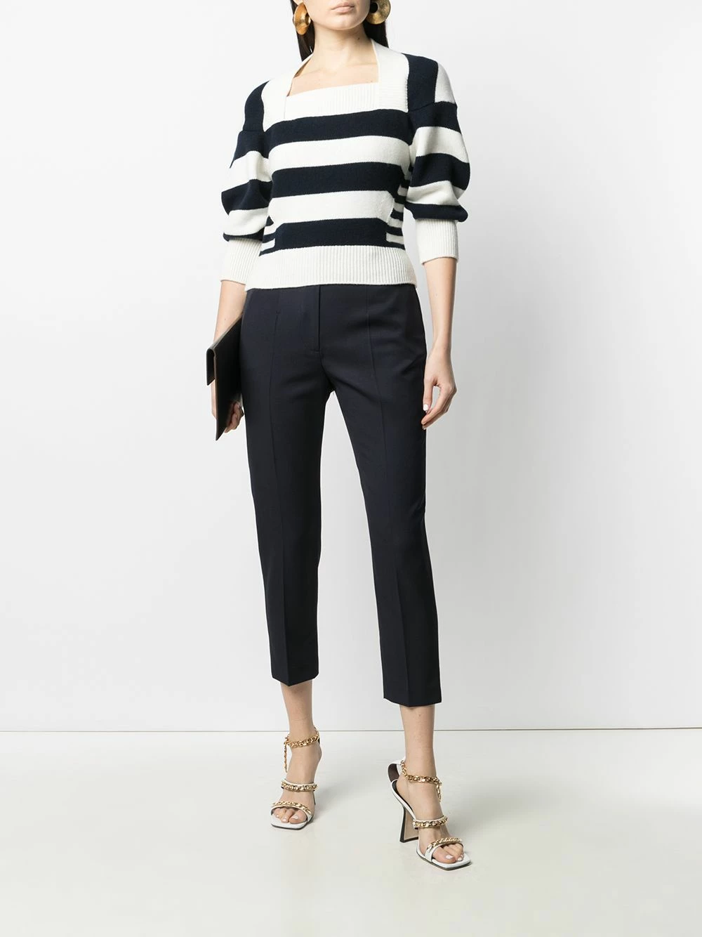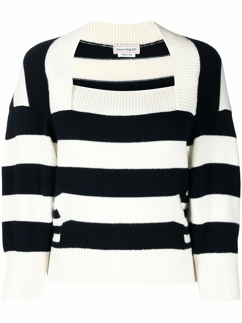 You’ve earned your stripes. Treat yourself to this wool-cashmere blend striped wool-cashmere top from Alexander McQueen to show them off. It’s a black-and-white matter.