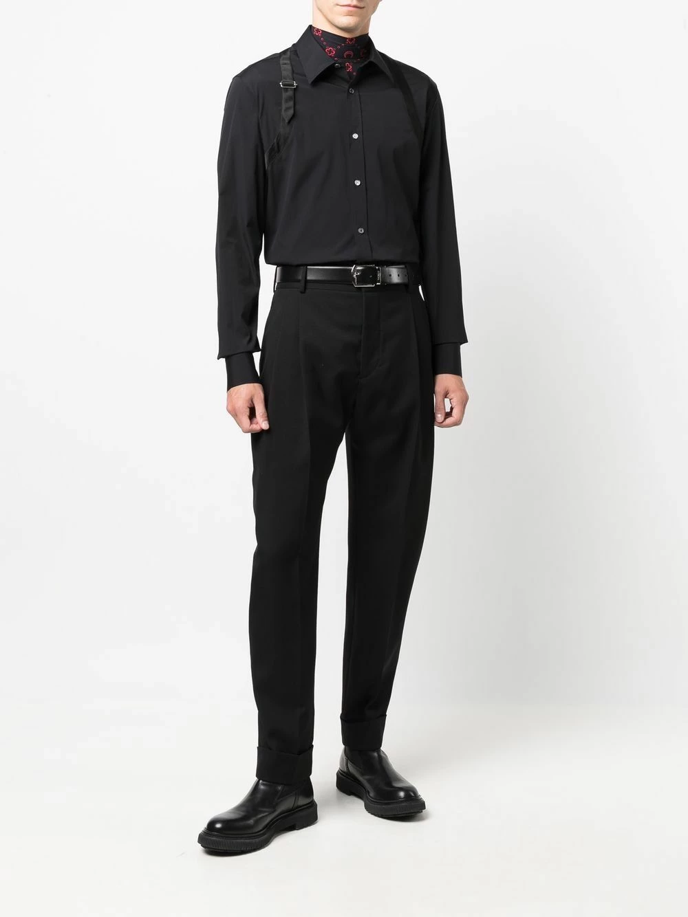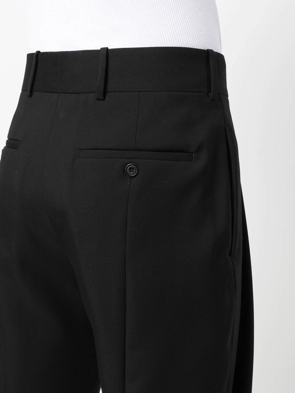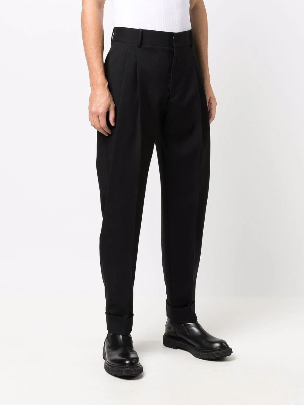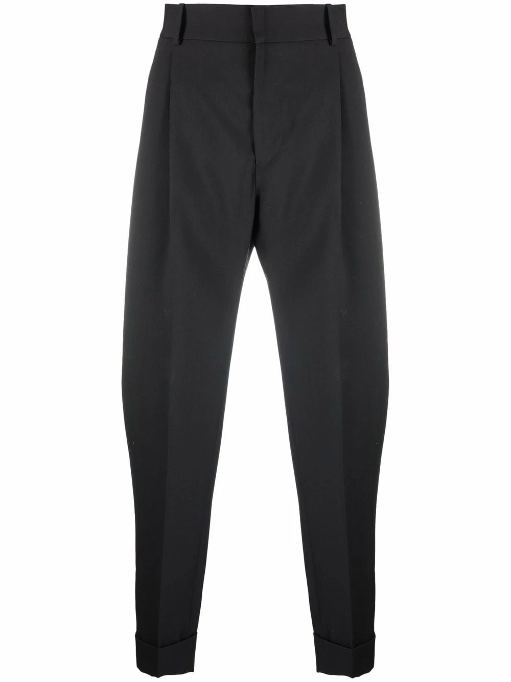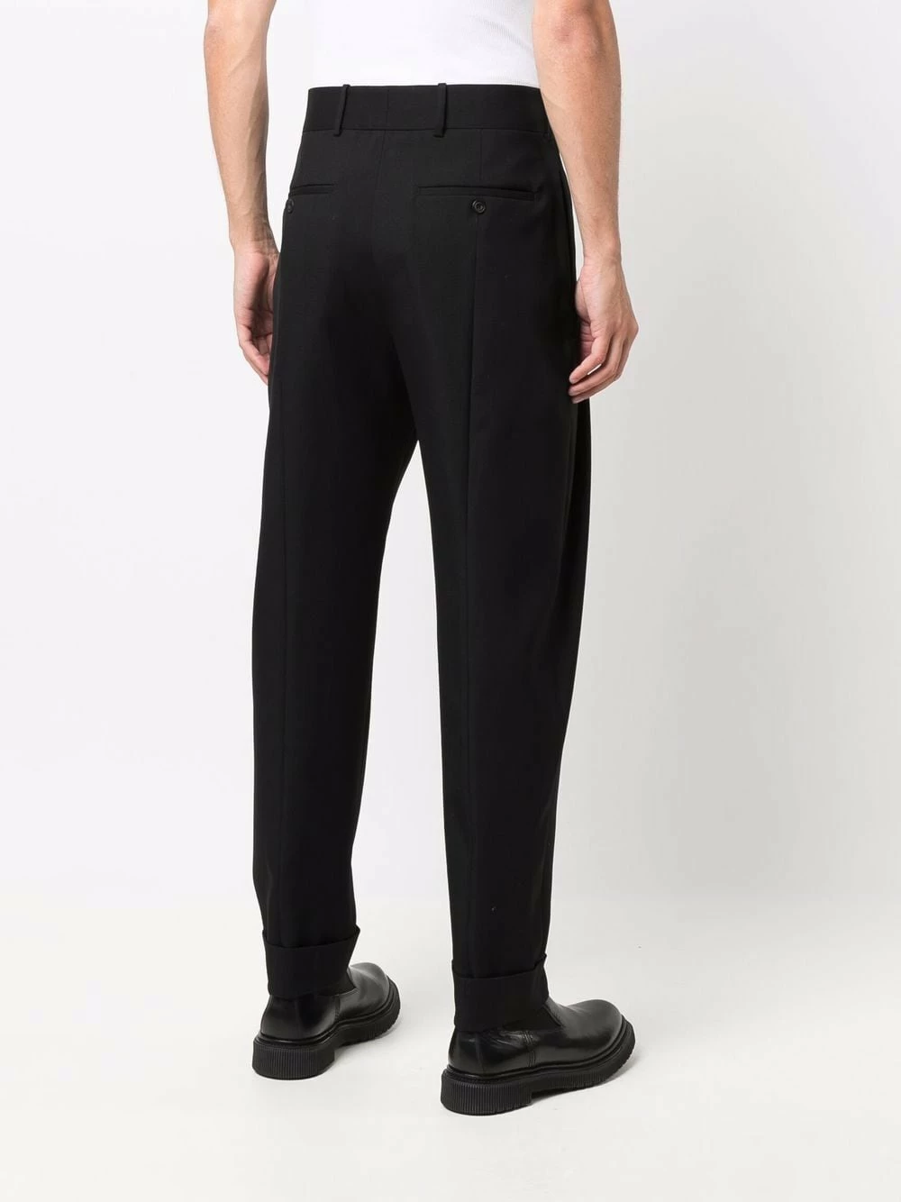 Expert craftsmanship comes as standard with Alexander McQueen designs and this pair of tailored trousers will not disappoint. Produced in a cotton, wool and cupro mix; the tapered silhouette is further enhanced by central pleating and turn-up cuffs.