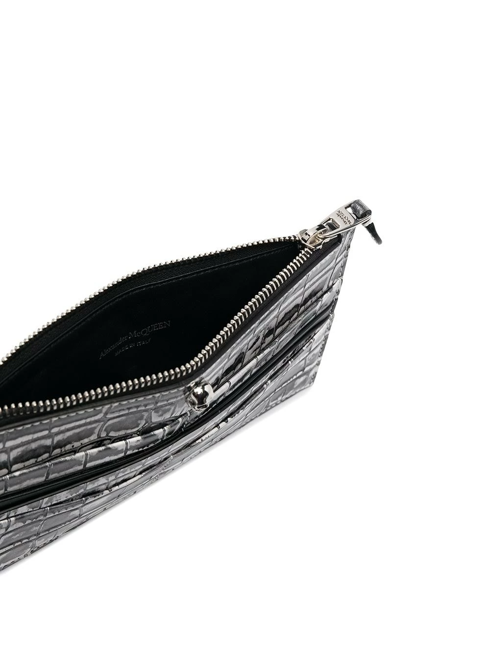 Keep your cards close to your chest. This textured zip-top cardholder from Alexander McQueen is the perfect piece to simply slip in your bag or pocket. Never forget where you placed them.