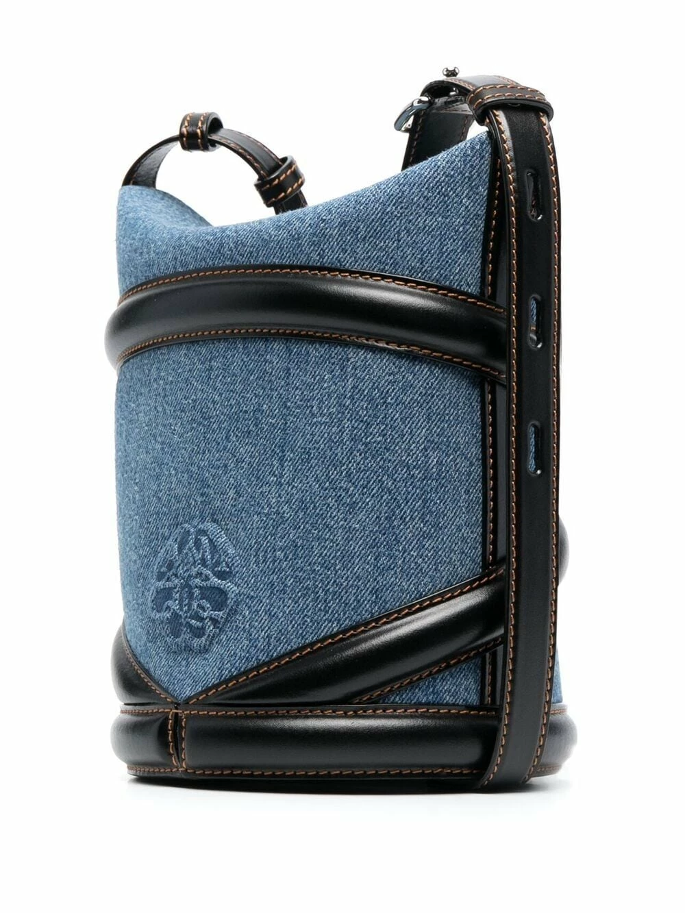 Behold Alexander McQueen’s take on the bucket bag. Crafted from denim, this accessory called The Curve boasts a leather trim that resembles the House’s iconic harness silhouette. Fashion with history.