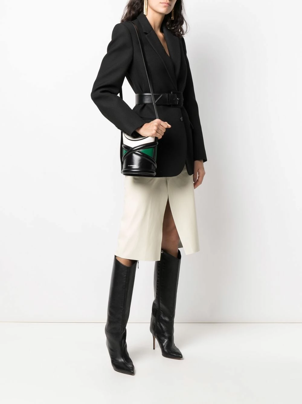Inspired by Alexander McQueen’s deep-rooted relationship with the harness – a rebellious detail periodically appearing on runway styles including shirts and dresses – the Brit-tastic label presents The Curve shoulder bag. Expertly crafted from supple calf leather and detailed with a playful colour-block design, the style can be slung over the shoulder or worn across the body.
