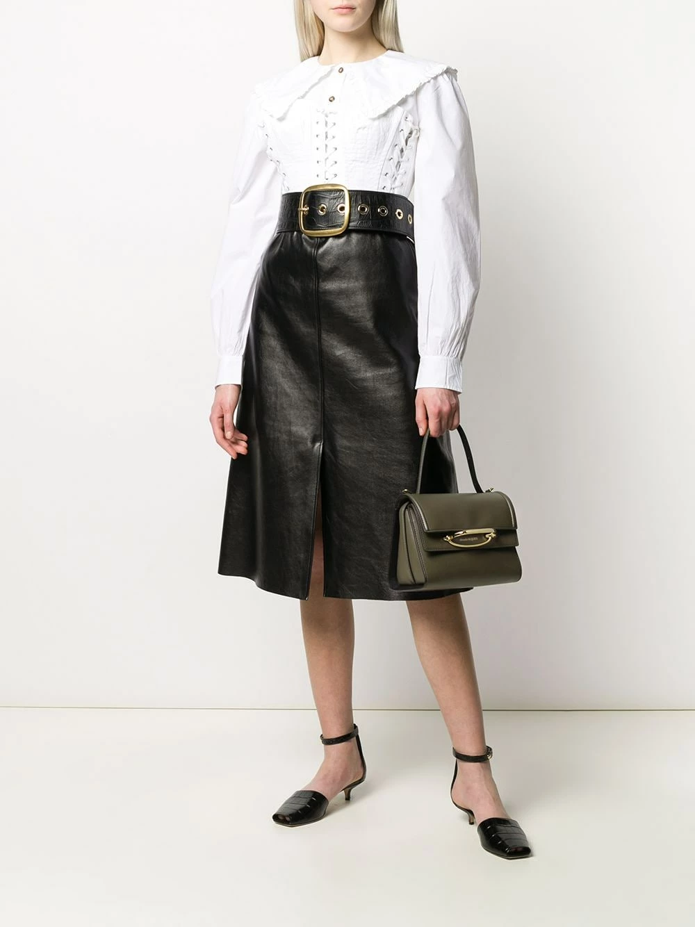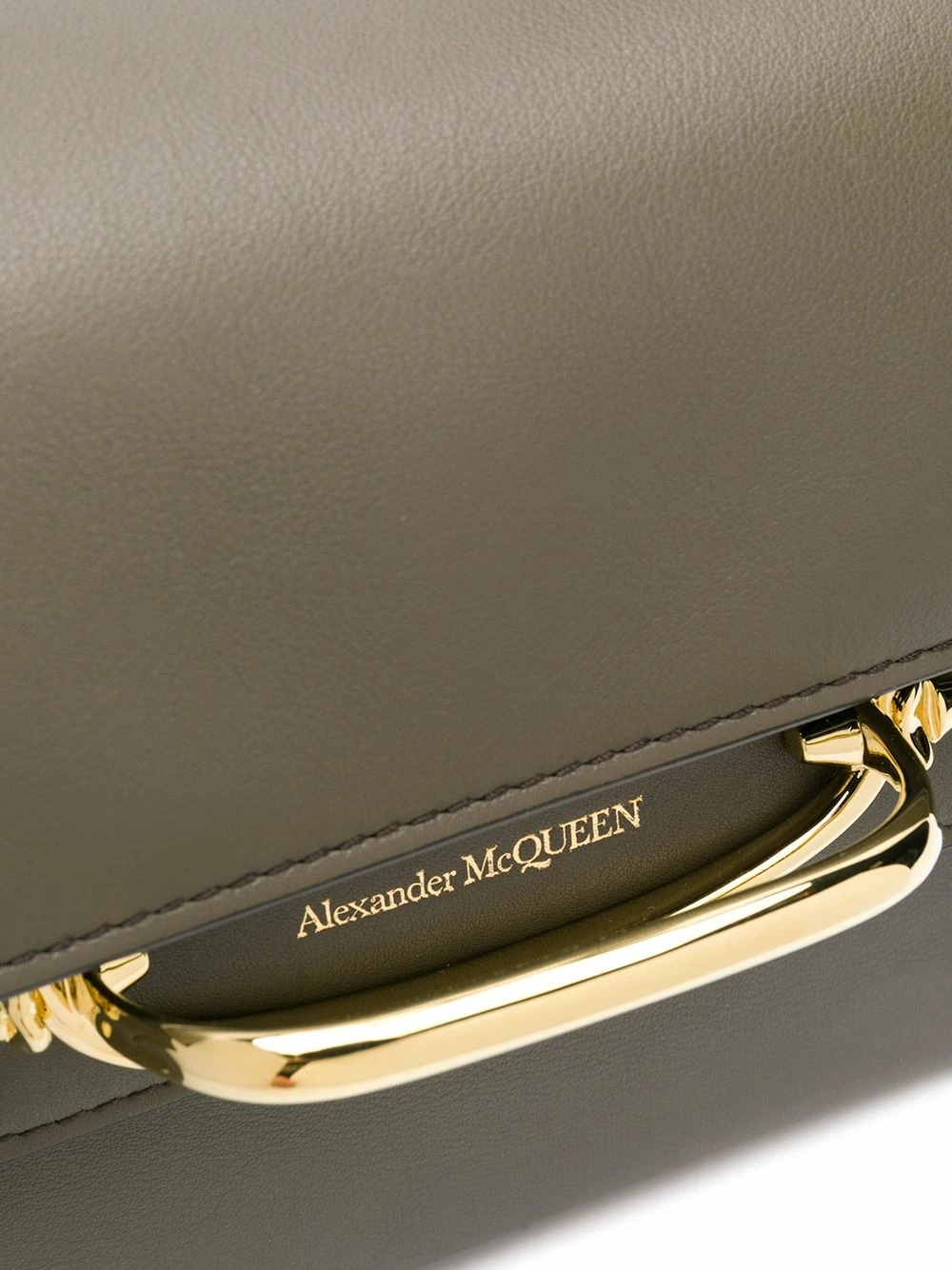 Allow us to tell your the story of how this bag became apart of your collection. Expertly crafted from khaki green leather, this Italian-made The Story bag from Alexander McQueen attracted you thanks to its gold-tone hardware and sleek yet roomy look. End of story. Featuring a top handle, a detachable and adjustable shoulder strap, a main internal compartment, a front zip pocket, gold-tone hardware, a printed logo to the front and an internal card slot.