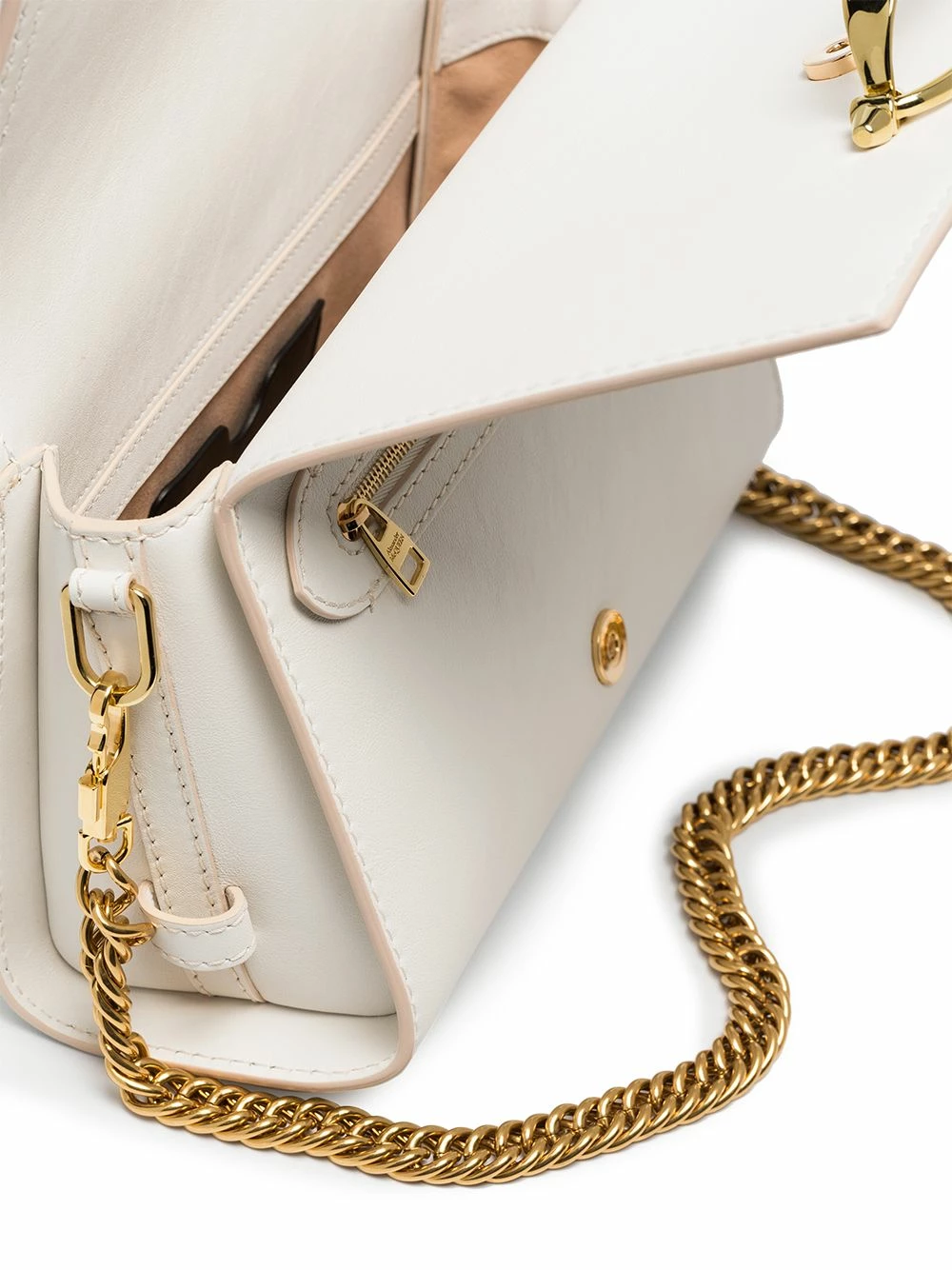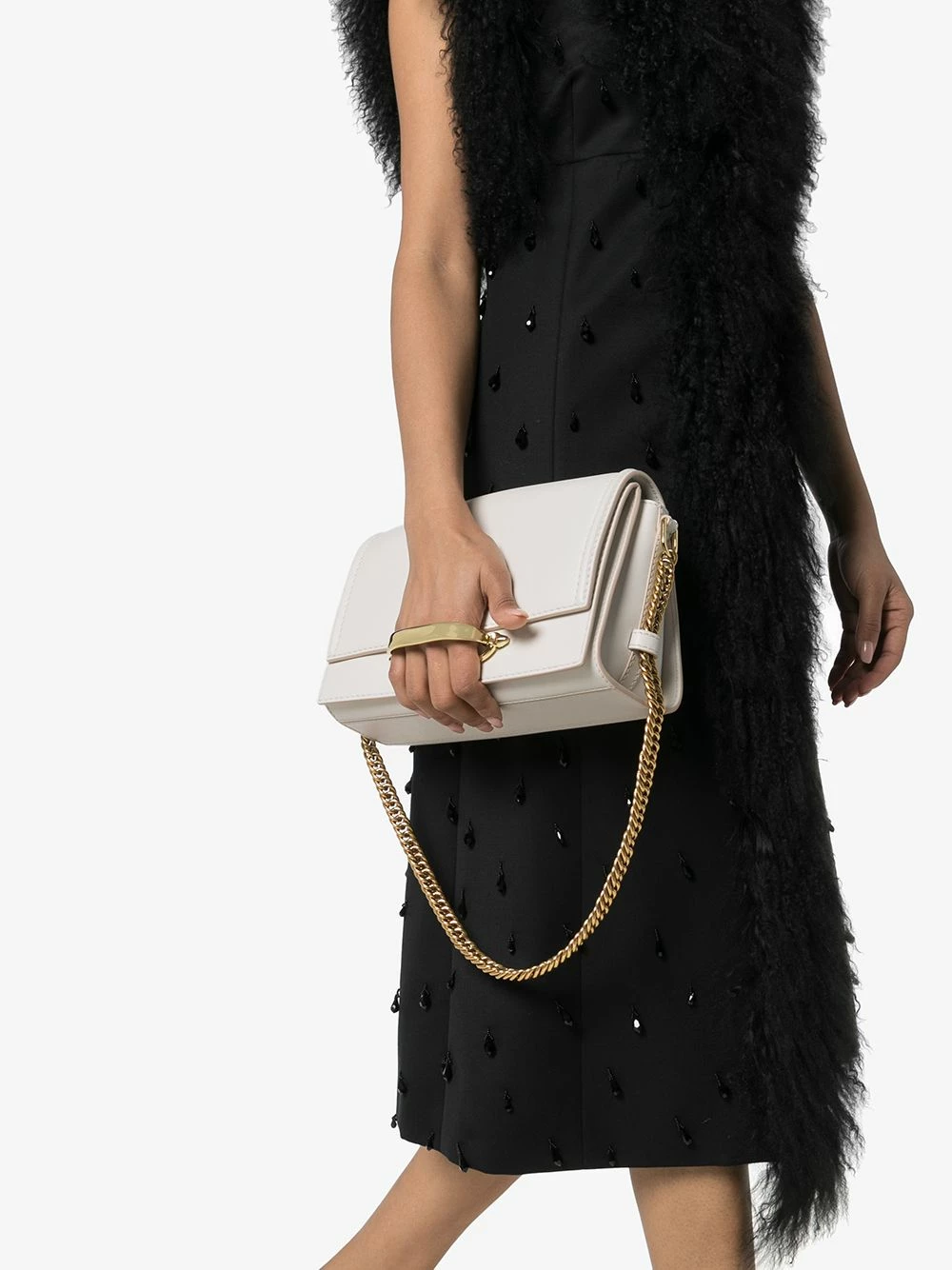 We’re not telling tall tales when we say this bag will change your life. Alexander McQueen’s deep ivory leather The Story shoulder bag has enough space inside to carry everything you could possibly need to take on your busy Monday whilst keeping you effortlessly stylish with its minimalistic design. Get your happily ever after today. Featuring a detachable shoulder strap, stitched panels, a printed logo to the front, a foldover top with magnetic closure, a main internal compartment, an internal zipped pocket and an internal slip pocket.